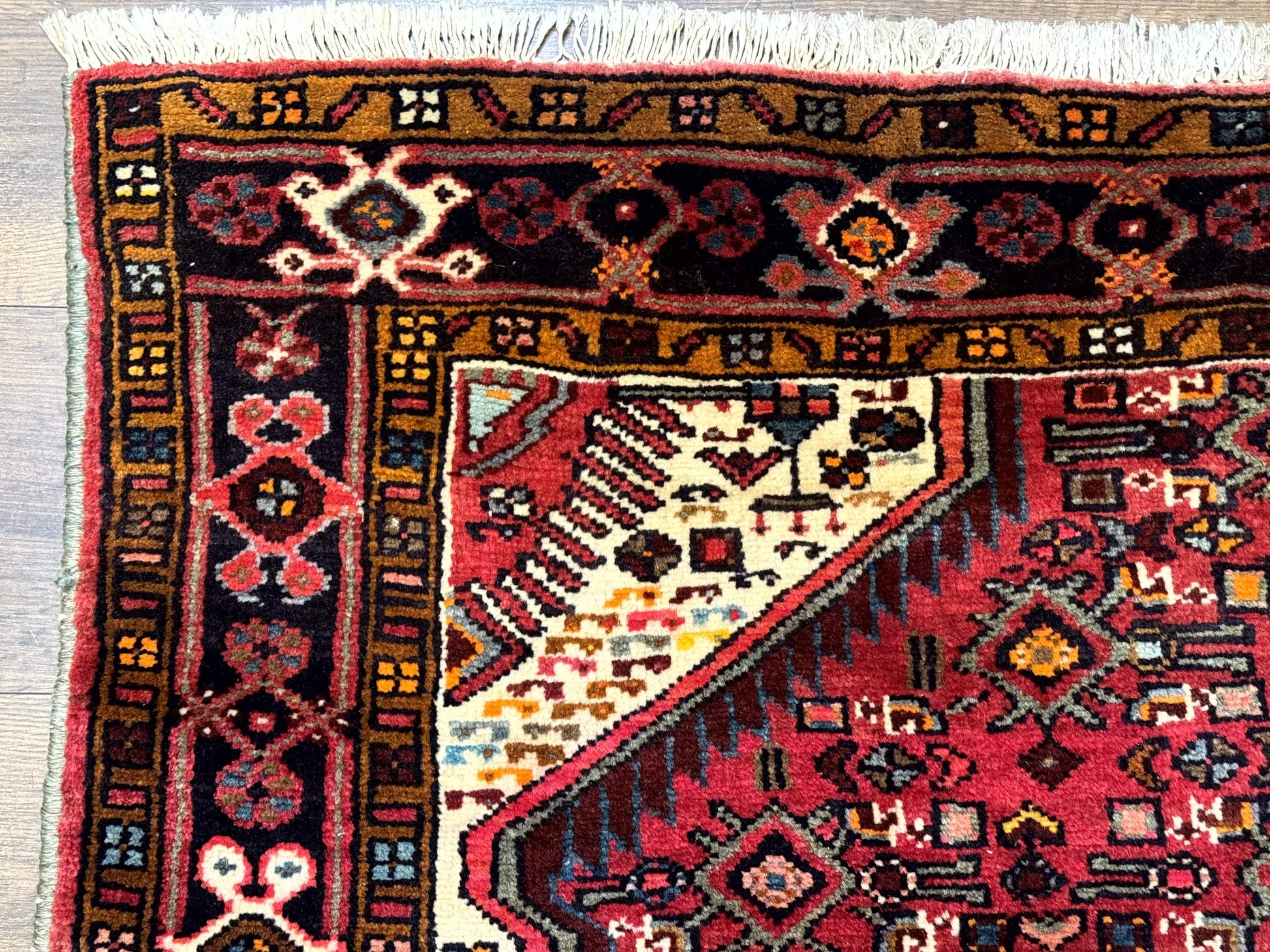 Persian Hamadan Rug 4x7 Tribal Malayer Carpet Red Ivory Bohemian Antique