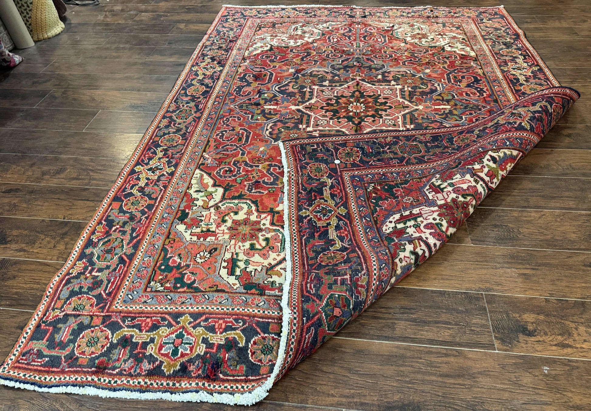 Heriz Rug 6 Foot 6 In By 9 Foot 3 In Wool Persian Carpet With Geometric Medallion