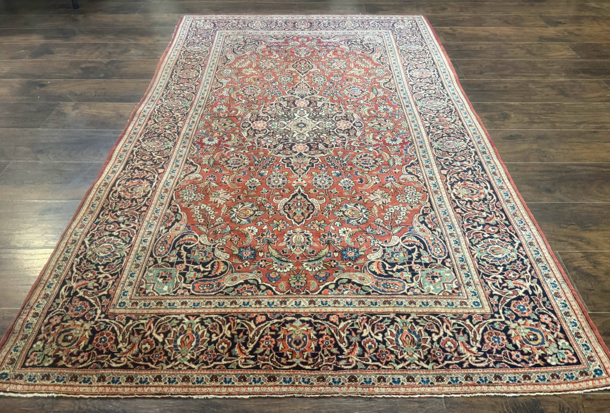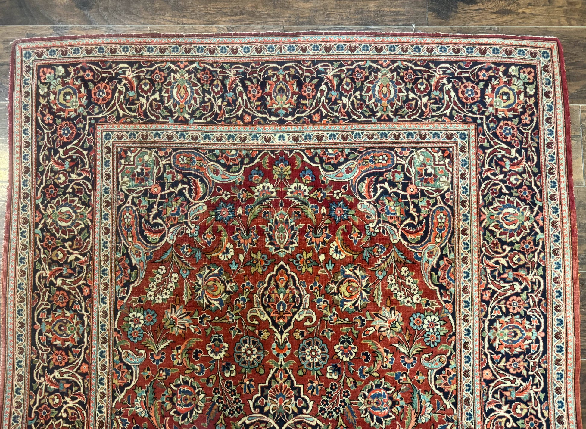 Persian Kashan Rug 4x7 Vintage Red Floral Medallion Handwoven Wool