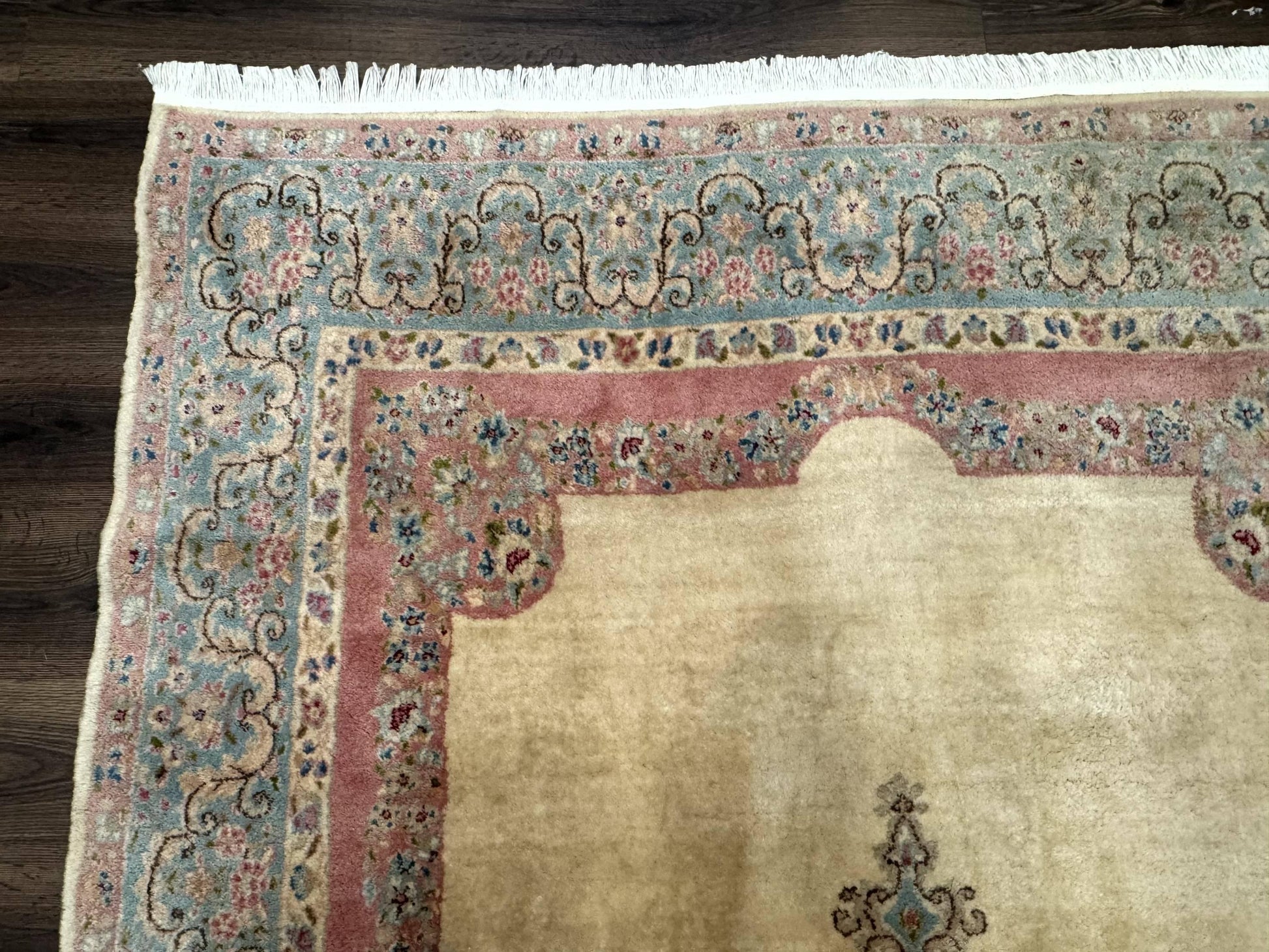 Persian Kerman Rug 6x9 Pastel Colors Semi Open Field Medallion Wool Hand Knotted