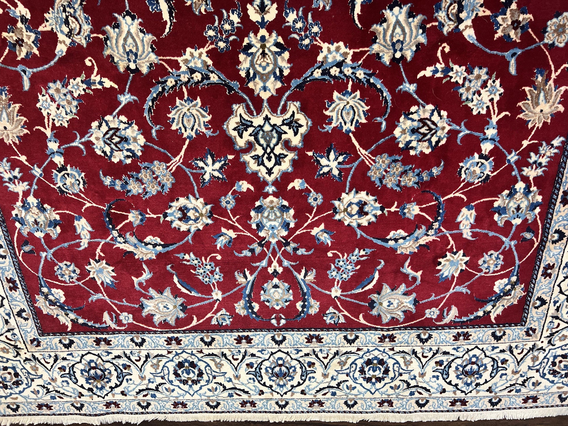 Persian Nain Rug 6x10, Wool and Silk Highlights, Red and Ivory, Floral Medallion, Vintage Handmade Hand Knotted, Fine 225 KPSI, Traditional Rug