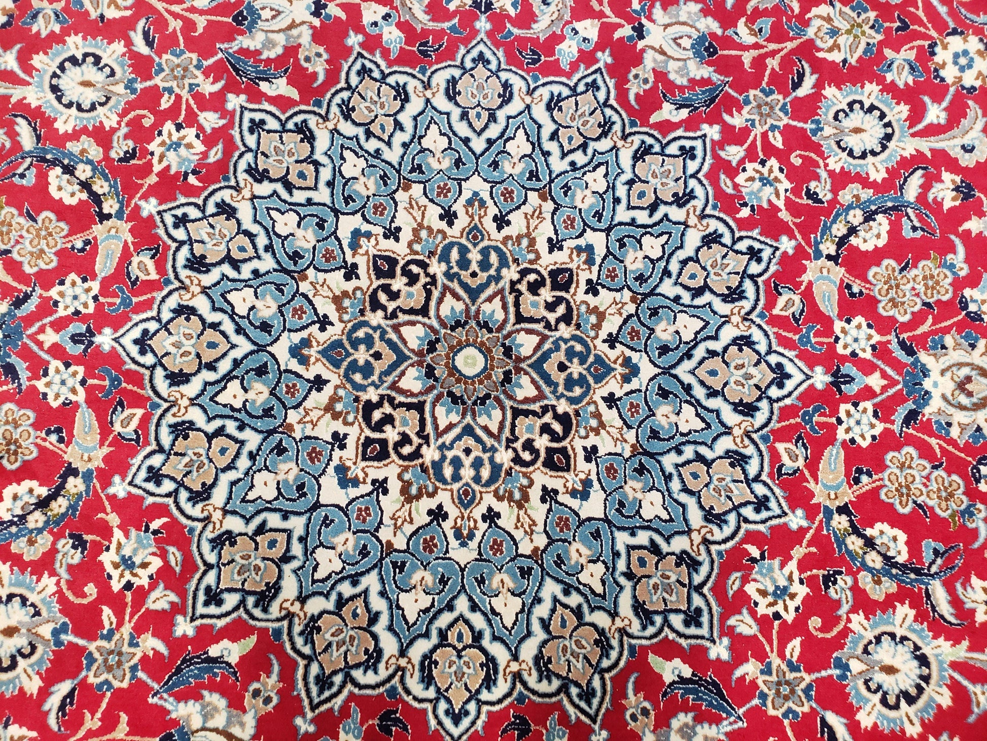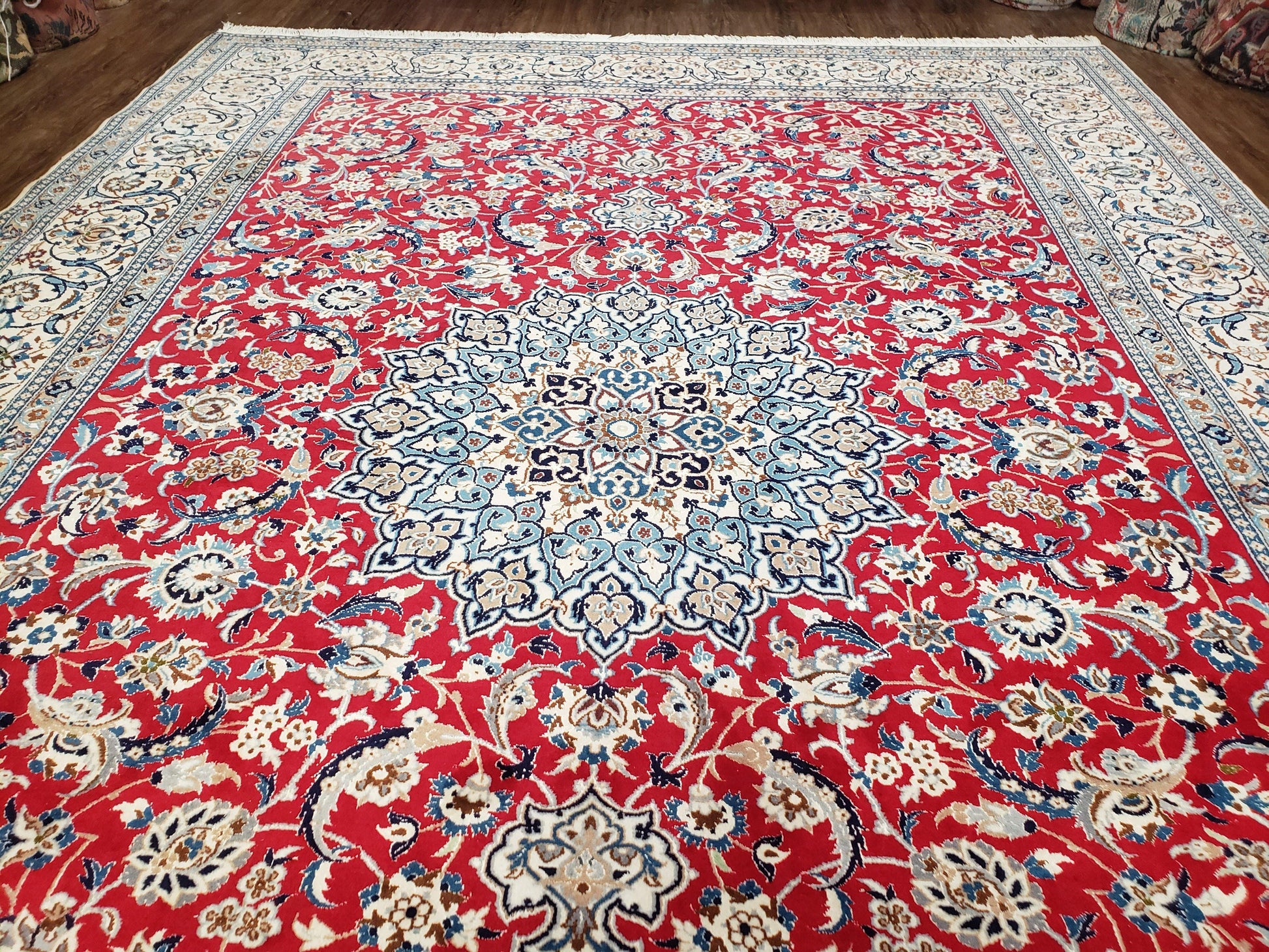 Persian Nain Rug 8x12, Red and Ivory, Signed