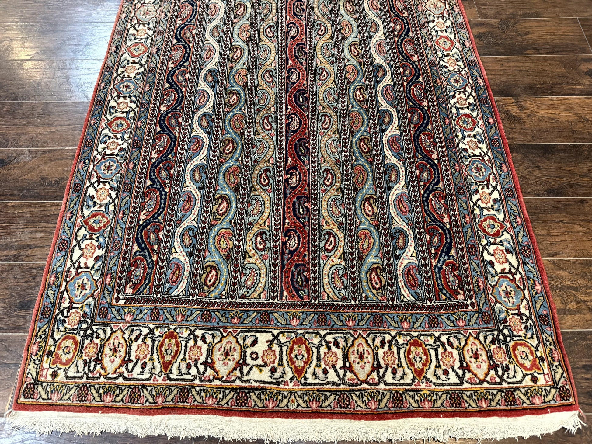 Persian Qum Rug 4x7, Striped Paisley Boteh Design