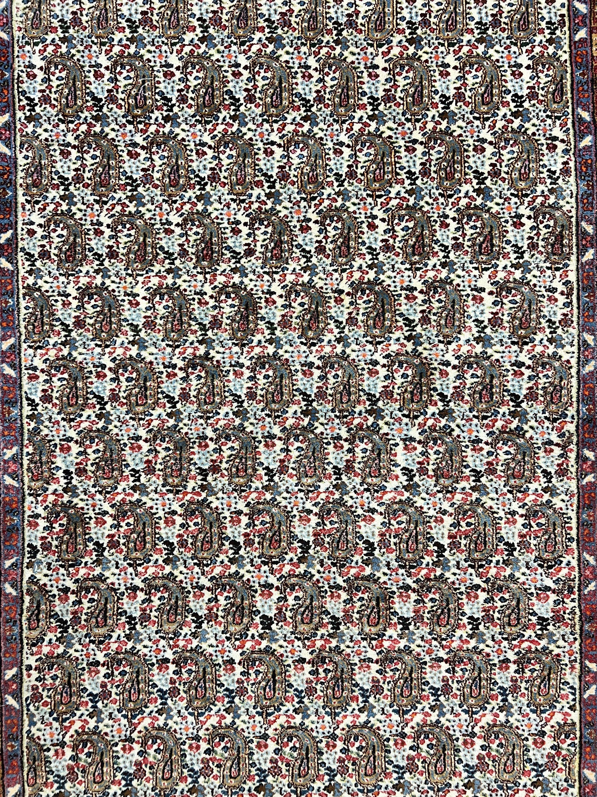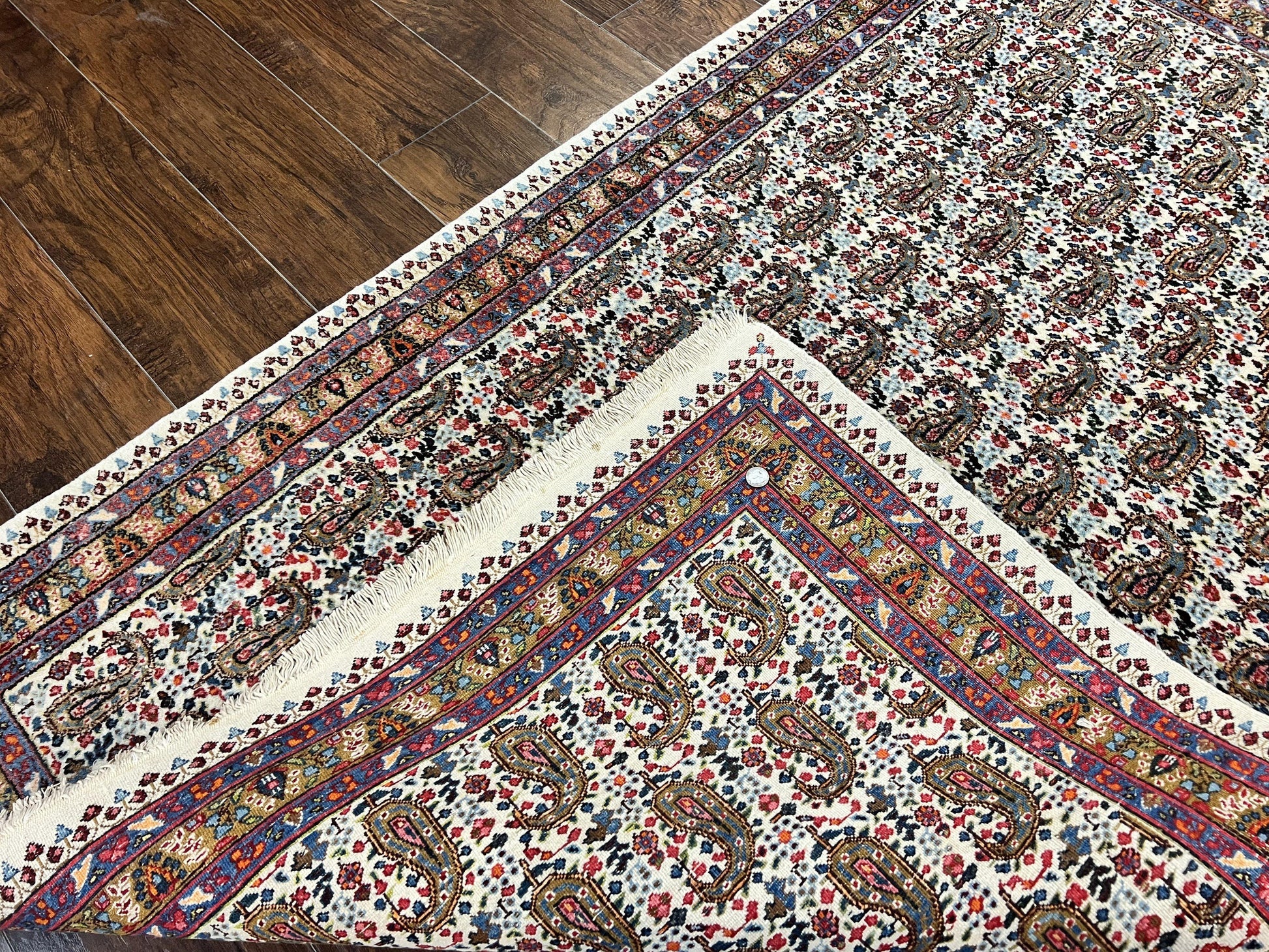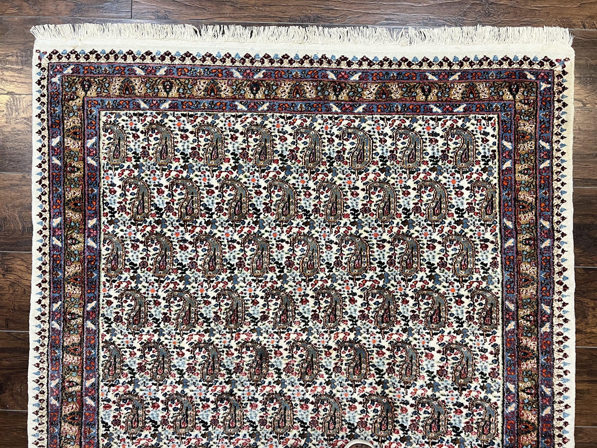 Persian Rug 4x6 Hand Knotted Ivory Mashad Kashmar Boteh Paisley Design