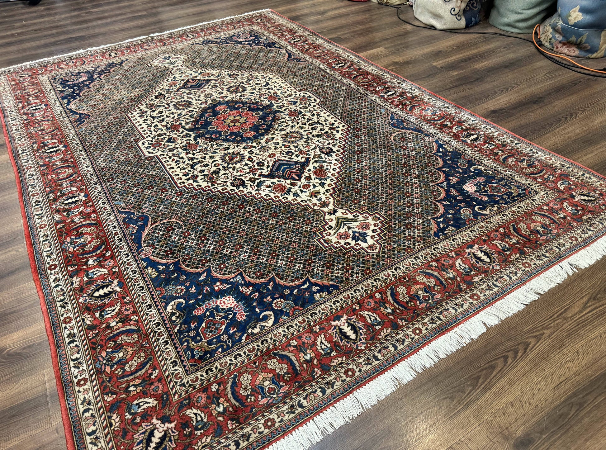 Persian Rug 7x10, Bakhtiari Saman Rug, Unique Design and Colors, Ivory Red Blue, Large Tribal Rug
