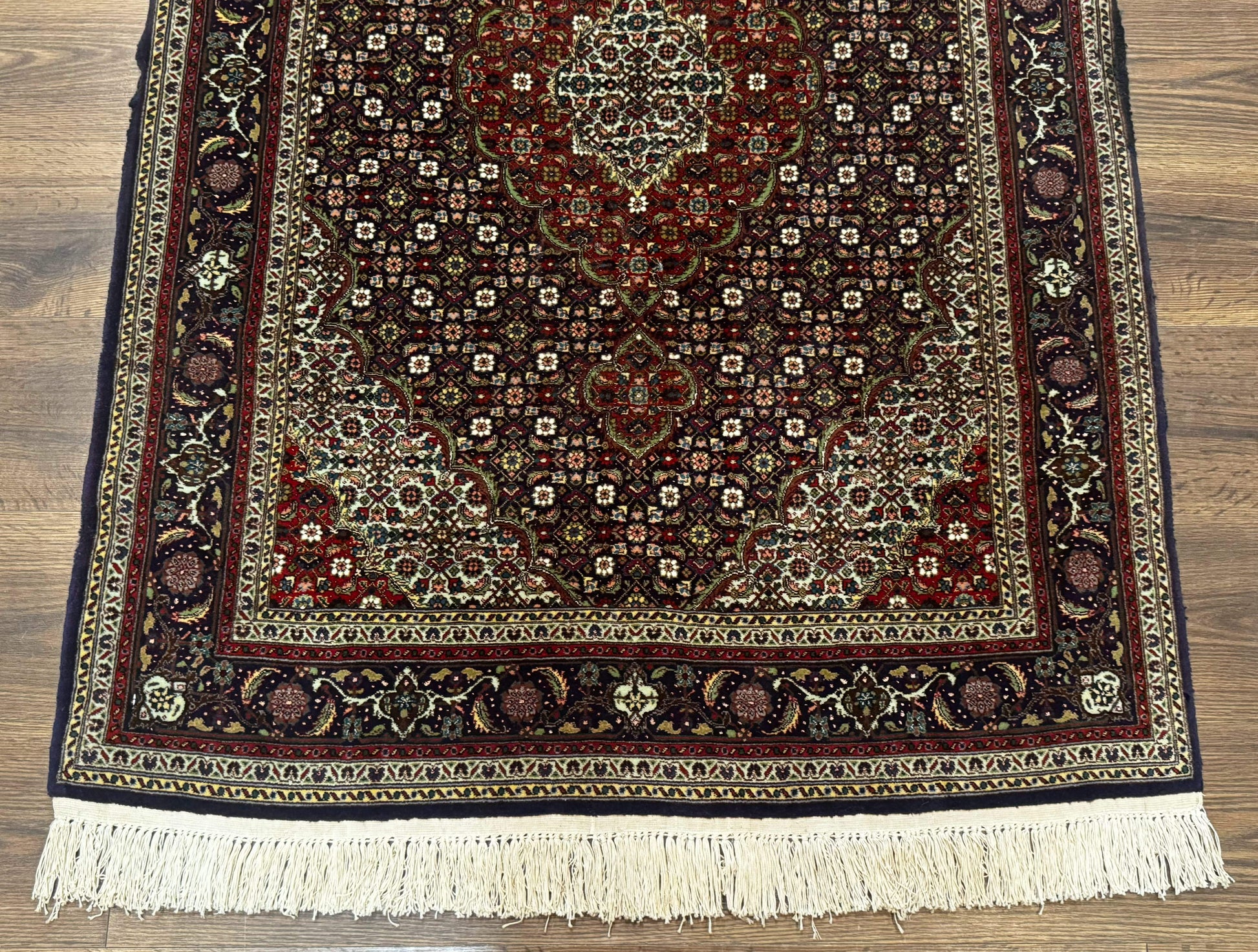 Persian Tabriz Rug 3x5, Wool on Silk Foundation, Very Fine 550 KPSI, Dark Navy Blue
