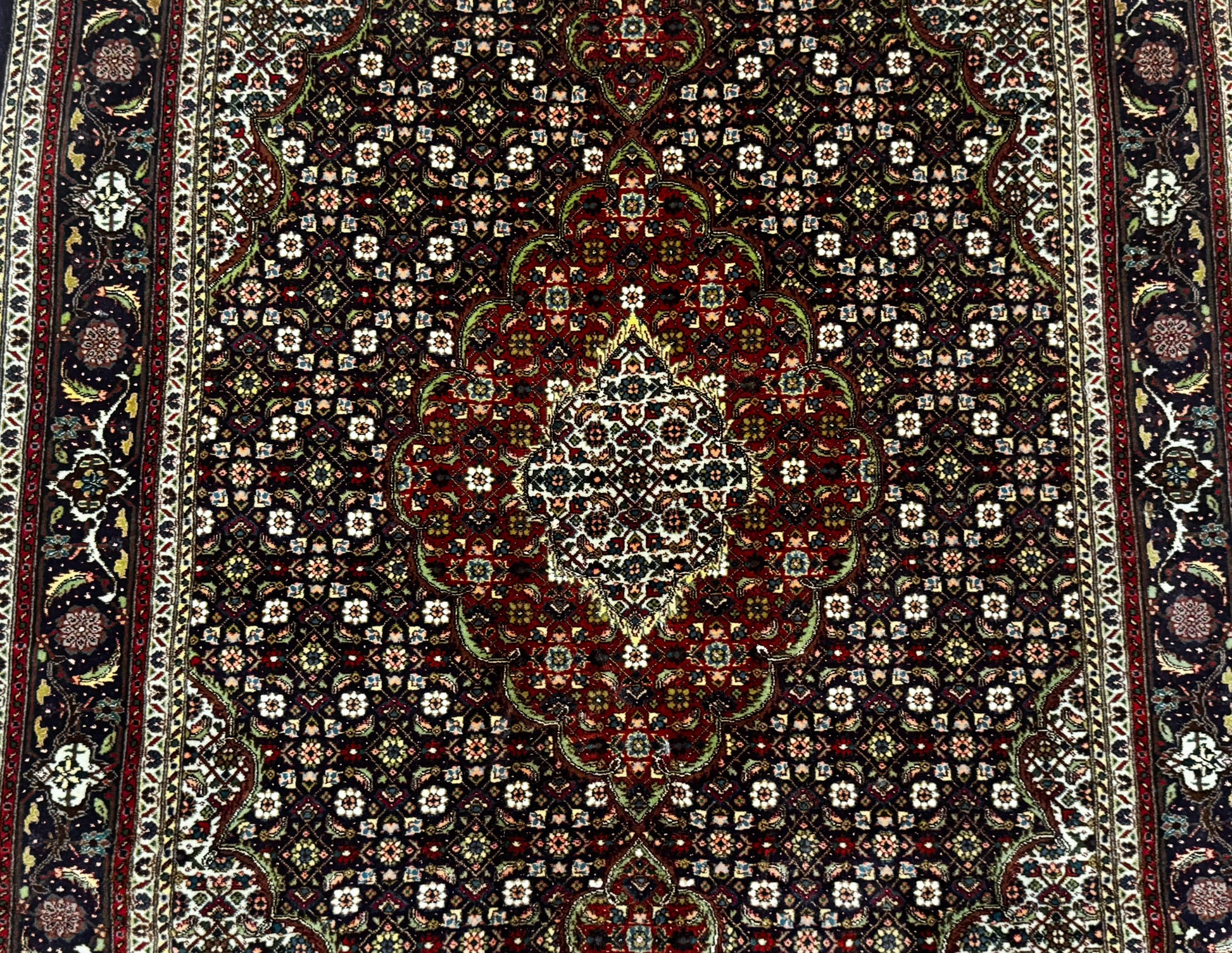 Tabriz rugs are among the most prestigious Persian rugs, originating from one of Iran's oldest weaving centers. Known for their precise craftsmanship and artistic diversity, Tabriz weavers often incorporate detailed medallion motifs, floral arabesques, and sometimes pictorial elements. With high knot counts and the use of silk foundations in finer pieces, Tabriz rugs are admired for their clarity of design and durability. These rugs are versatile for both traditional and formal interiors, appreciated by collectors and decorators alike.