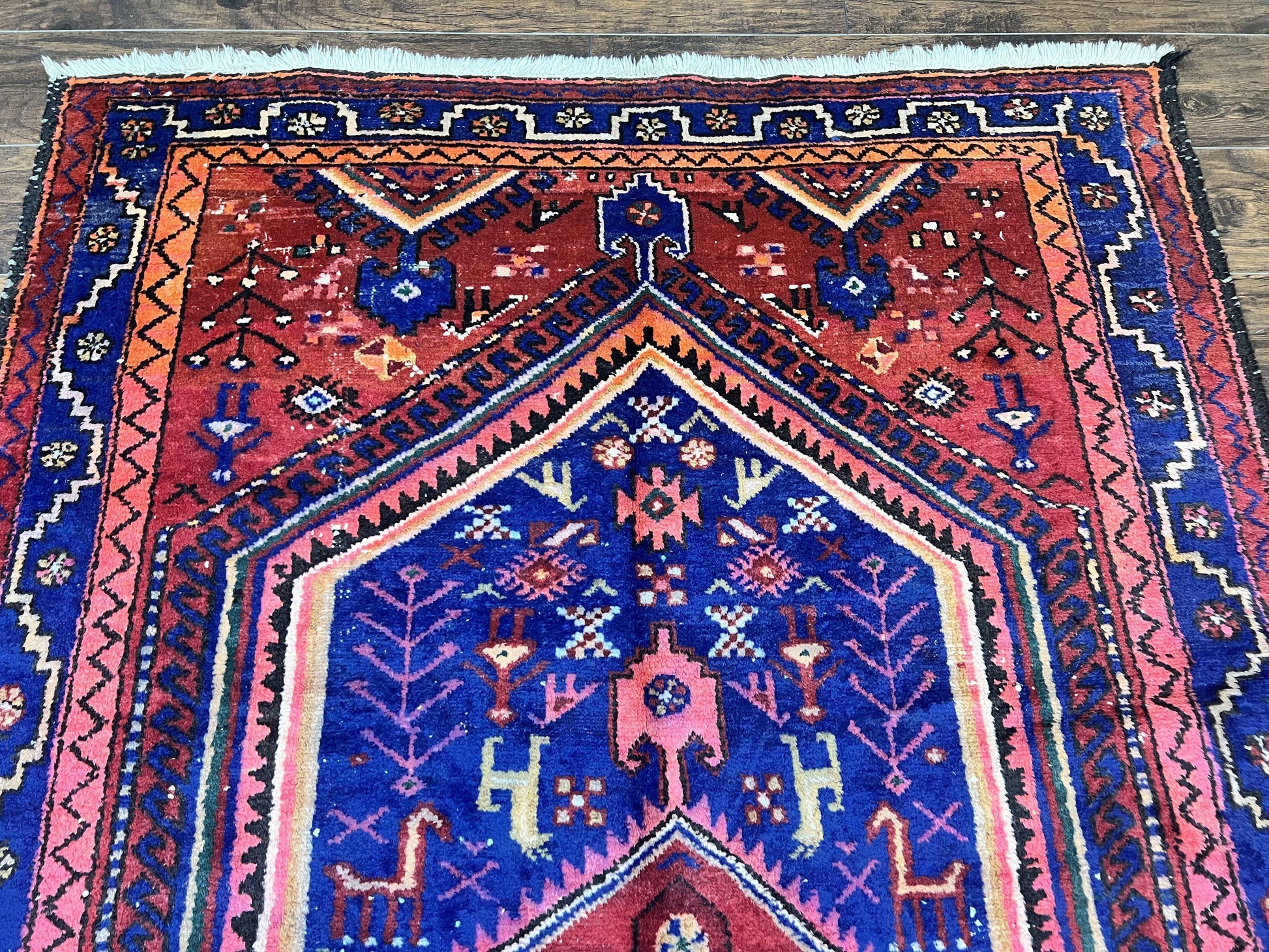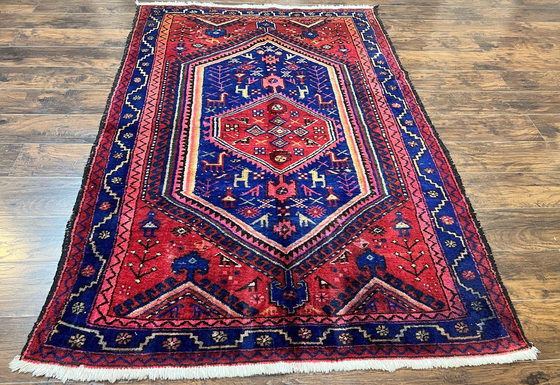 Persian Tribal Rug 5x7 Hand Knotted Wool Vintage Hamadan Nahavand Carpet Geometric Oriental