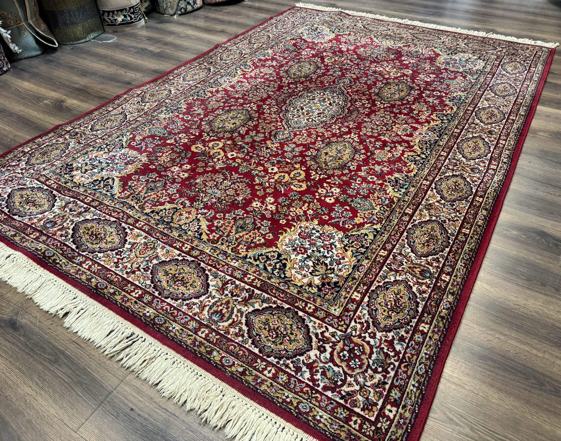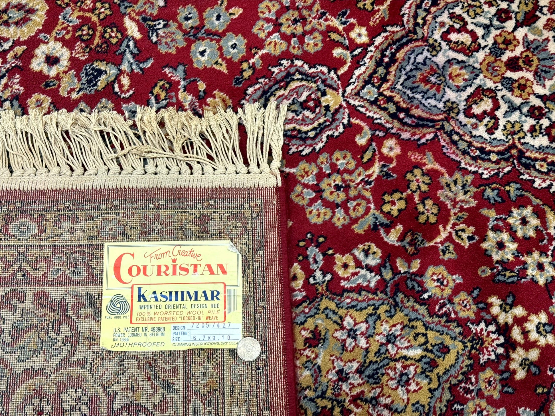 Persian Wool Rug 7x10, Couristan Carpet, Belgium Power Loomed Rug, Red, Floral, Traditional