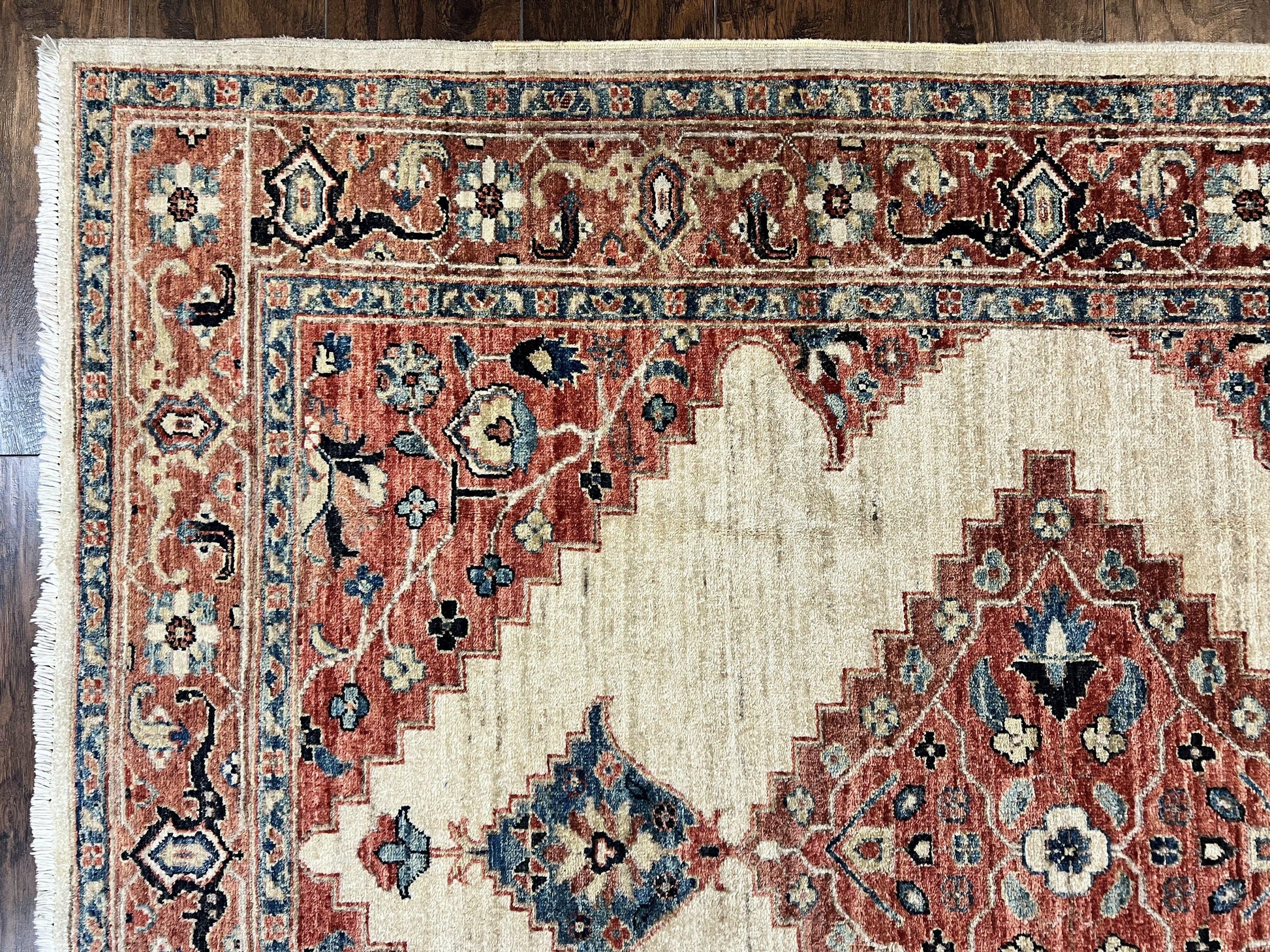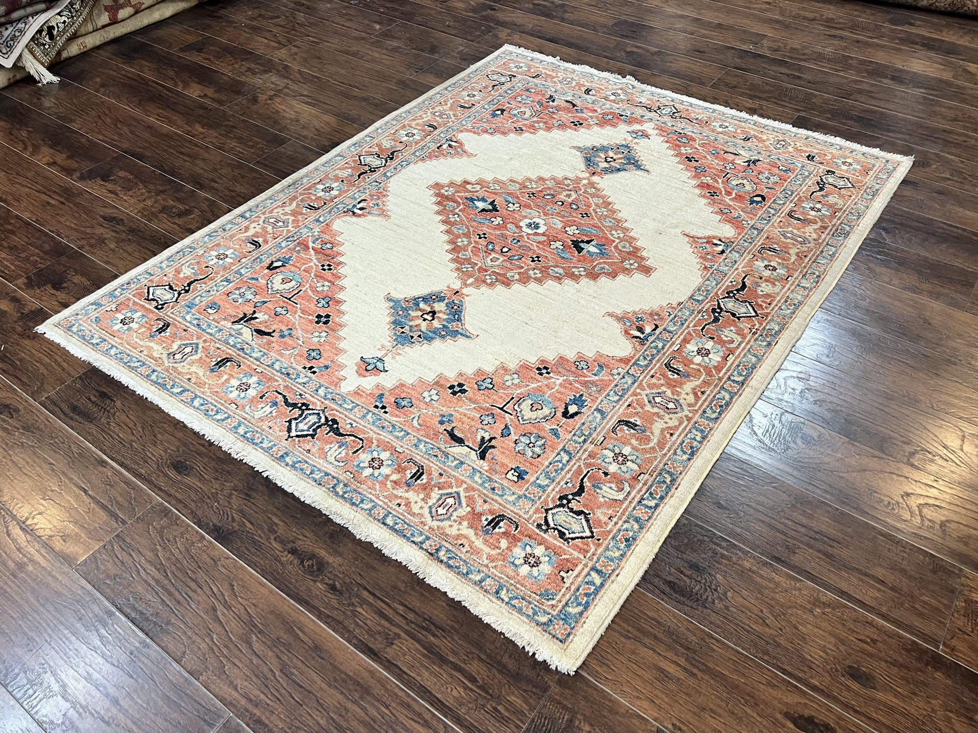 Peshawar Wool Hand Knotted Rug 5x7 Vintage Serapi Geometric Pakistani