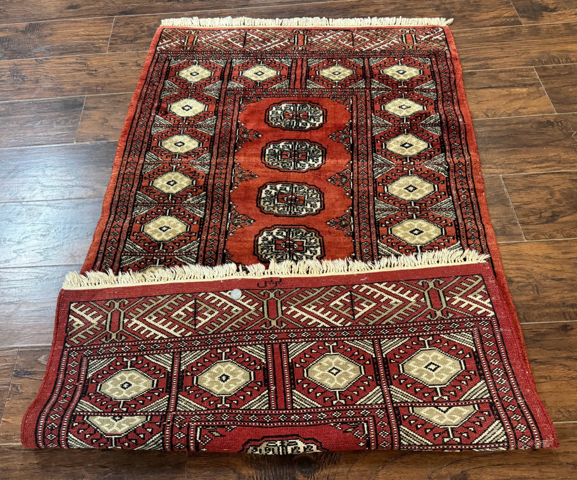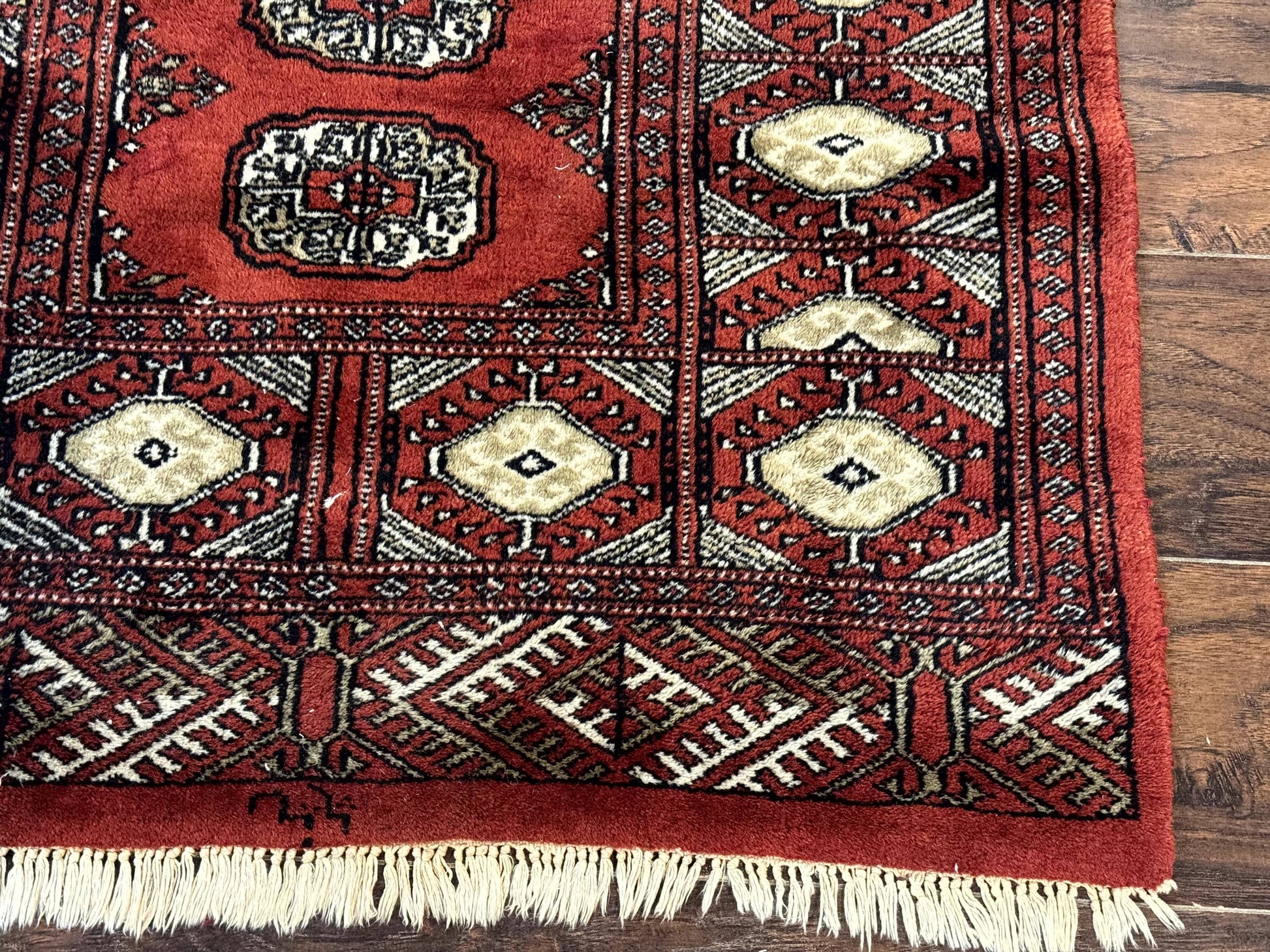 Red Pakistani Turkoman Bokhara Rug 3x5 Vintage Hand Knotted Signed