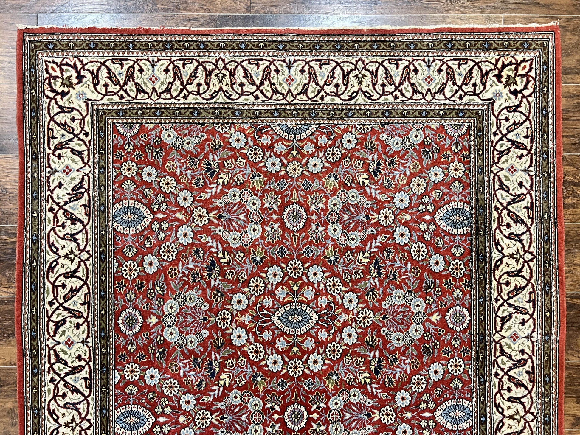 Red Persian Qum Rug 5 x 7.6, Hand Knotted Vintage Wool Fine Carpet 270 KPSI, Floral Allover