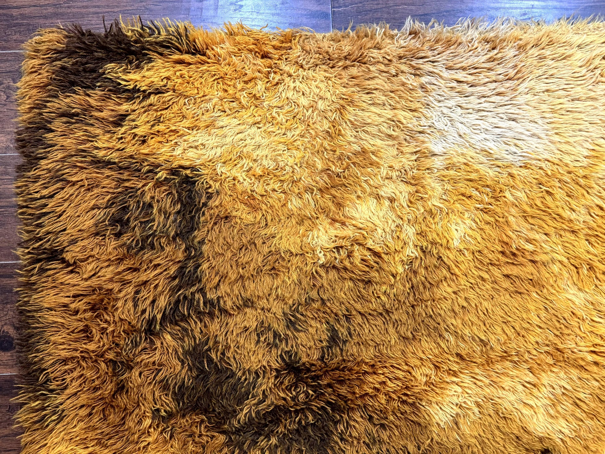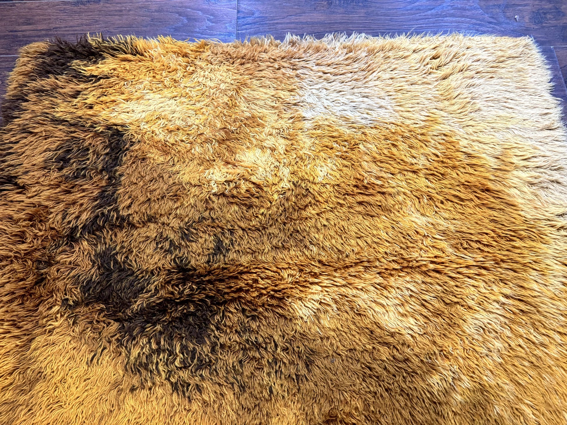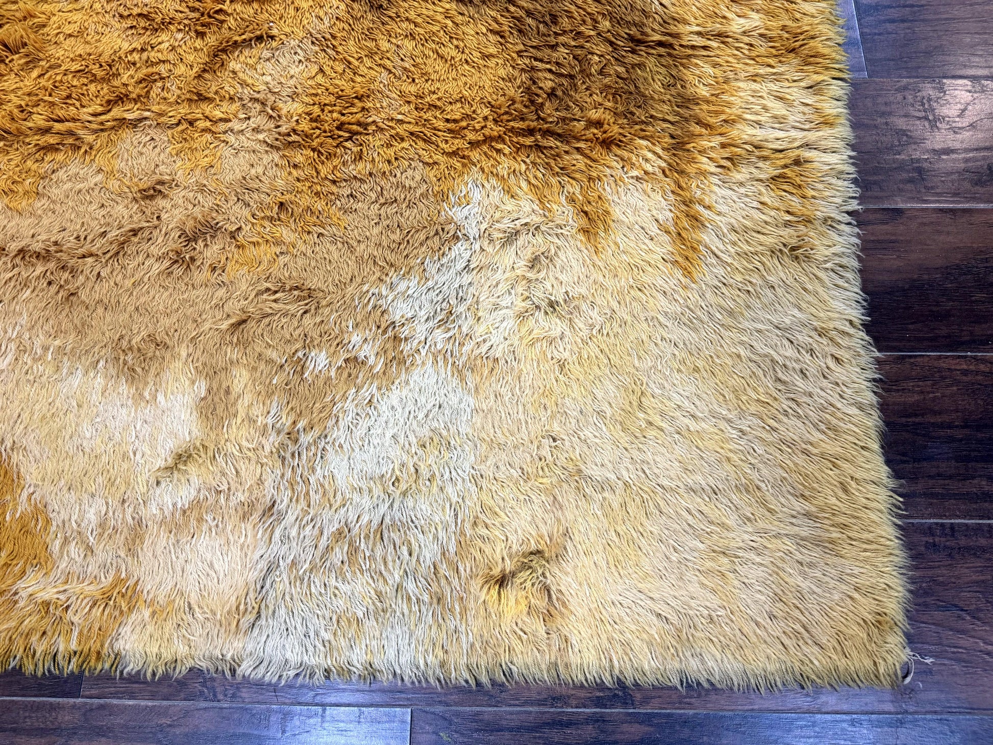 Rya Shag Rug Vintage 4.6 X 6 Yellow Mid Century Carpet For Living Room
