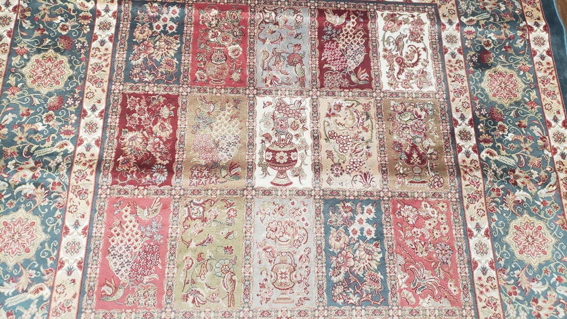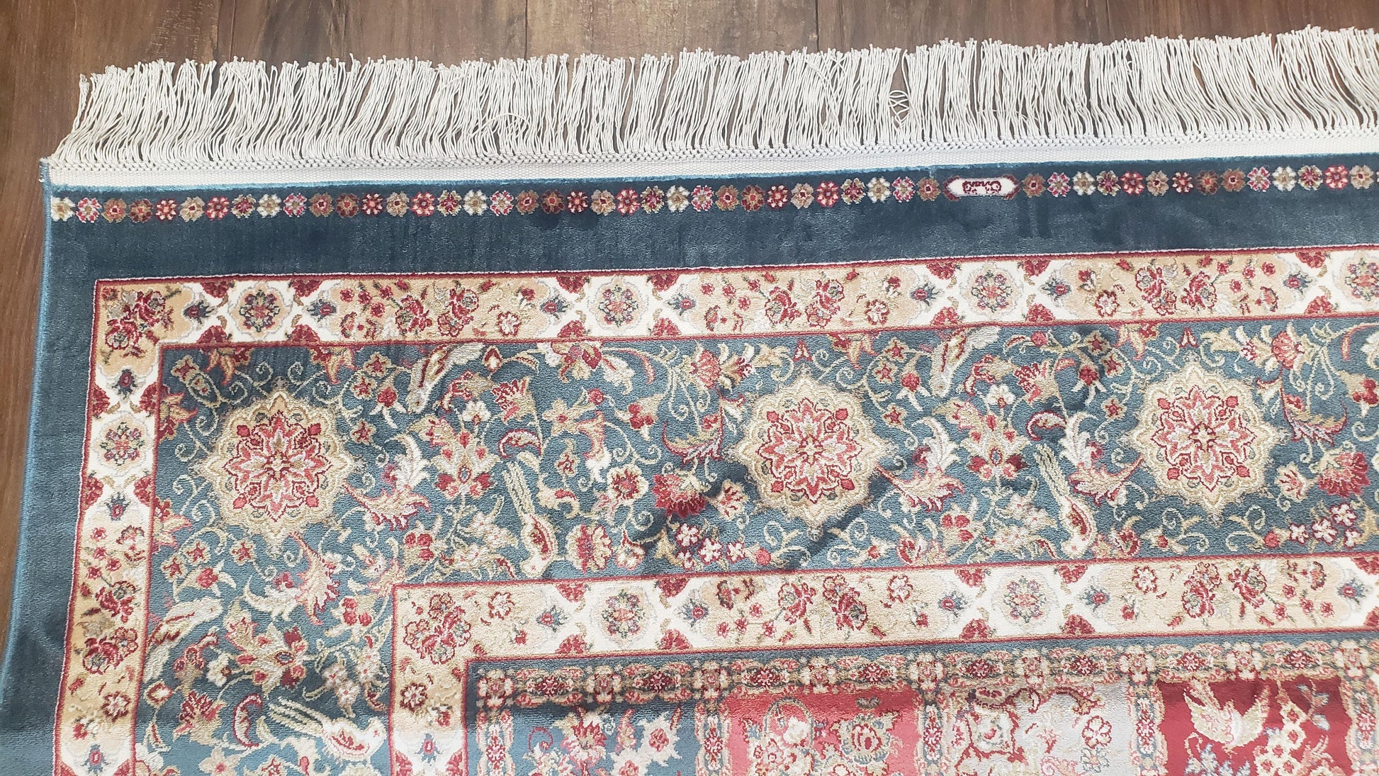 Silk Carpet 4x6 Blue, Panel Design, Four Seasons Pattern, Super Fine & Soft, Bamboo Silk, 4 x 6 Oriental Area Rug, High Quality, New Rug