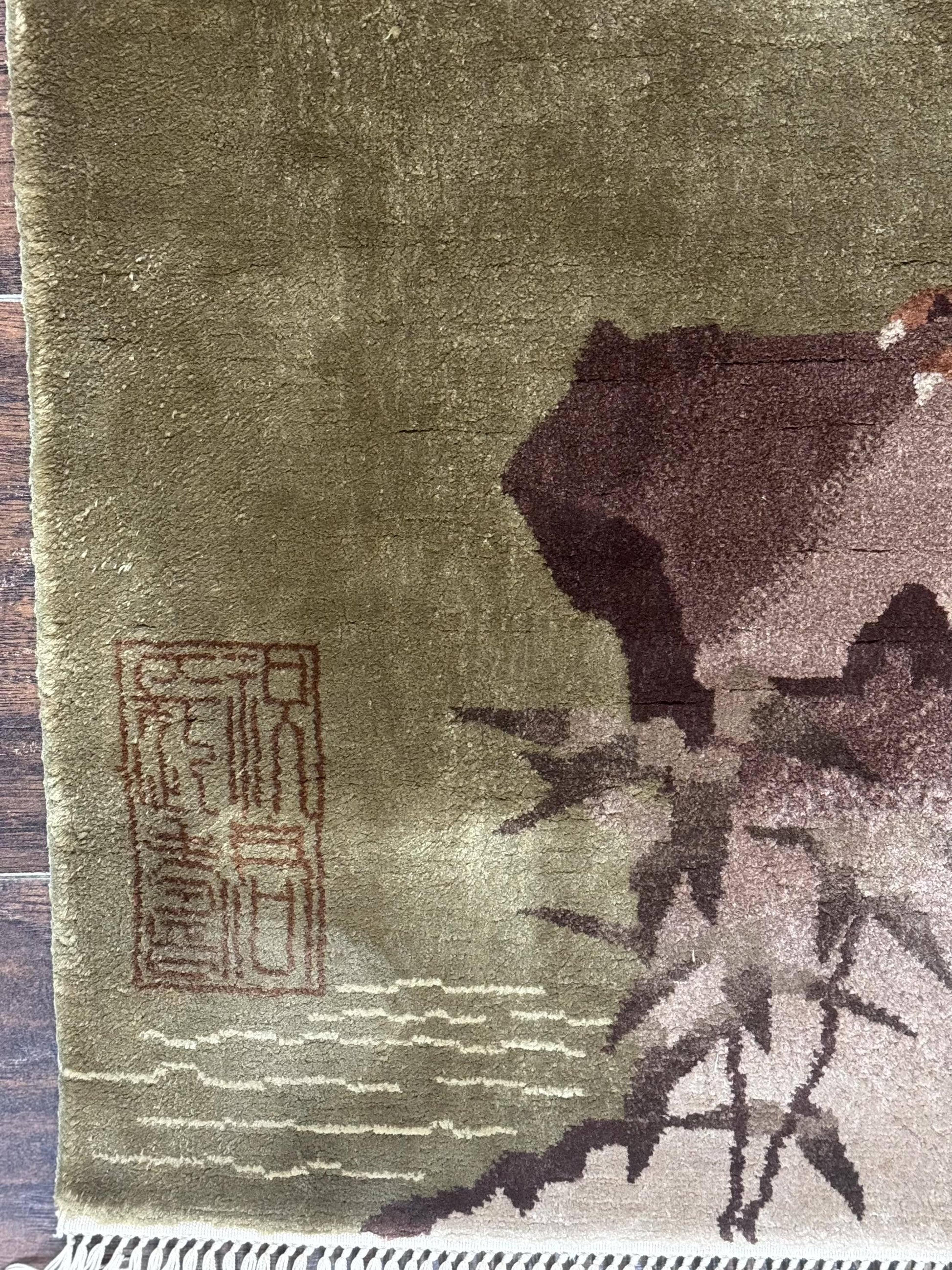 Silk Chinese Wall Hanging 2x4, Vintage Antique, Handmade, Bird on Mountain, Rug Tapestry