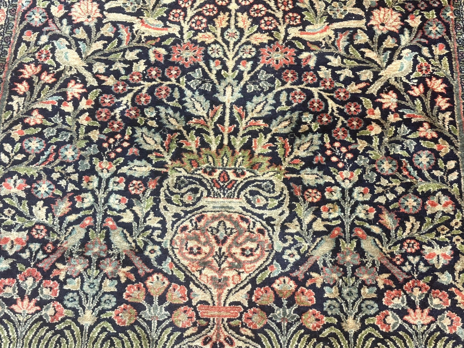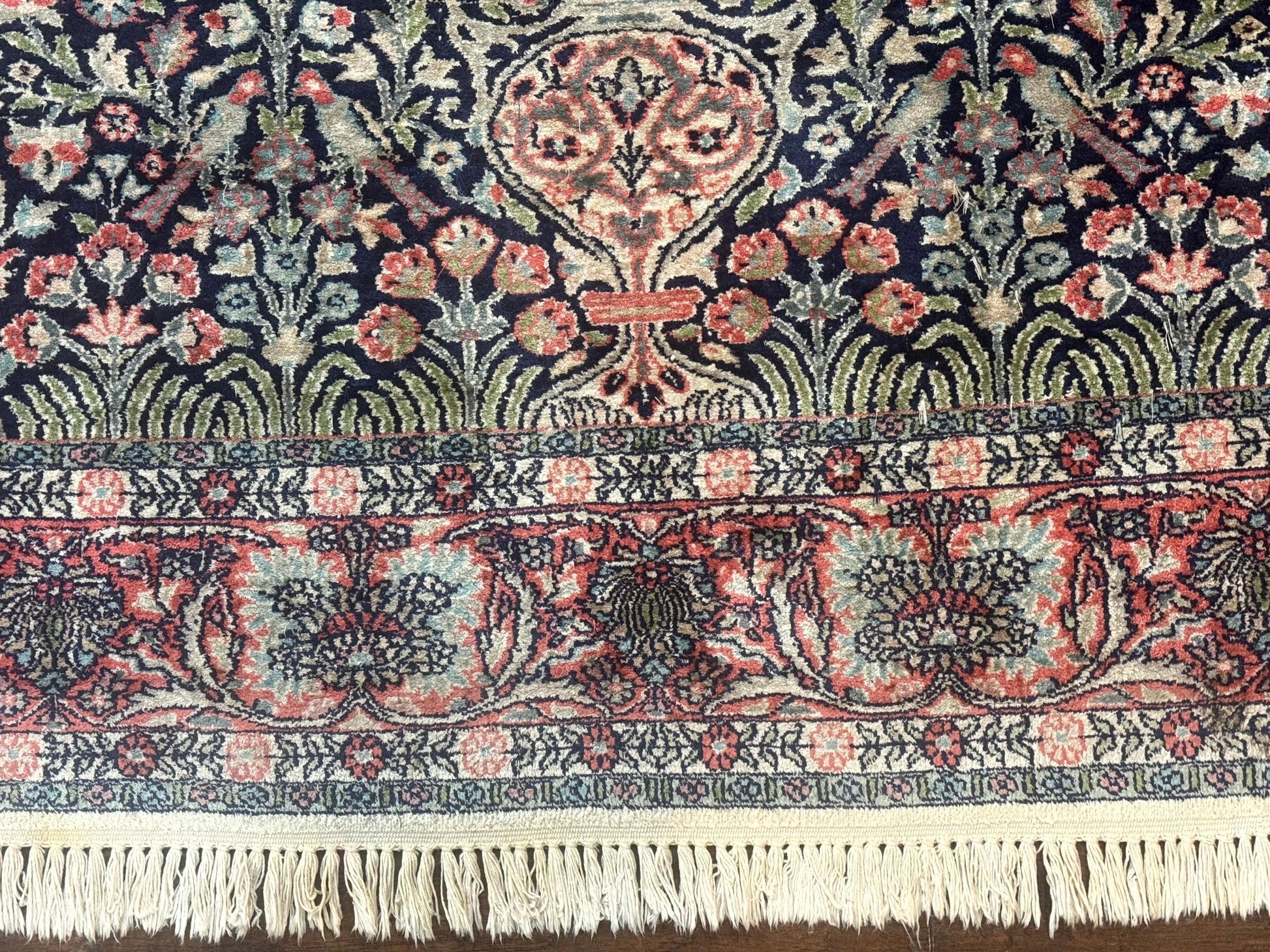 Kashmiri Silk Rug 4x6 Tree Of Life Birds Handmade Navy Red Oriental Carpet