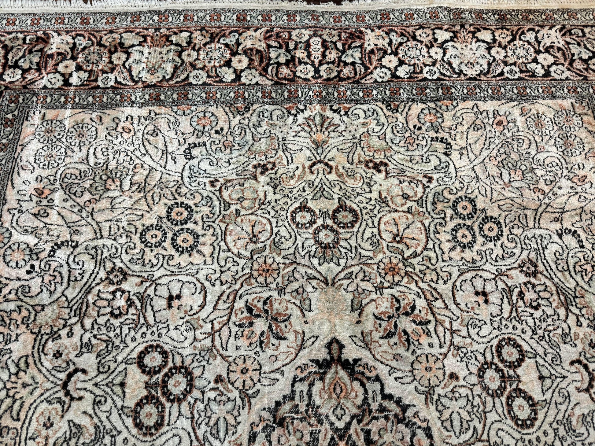 Silk Indian Kashmiri Rug 6x9 Hand Knotted Vintage Style Area Rug