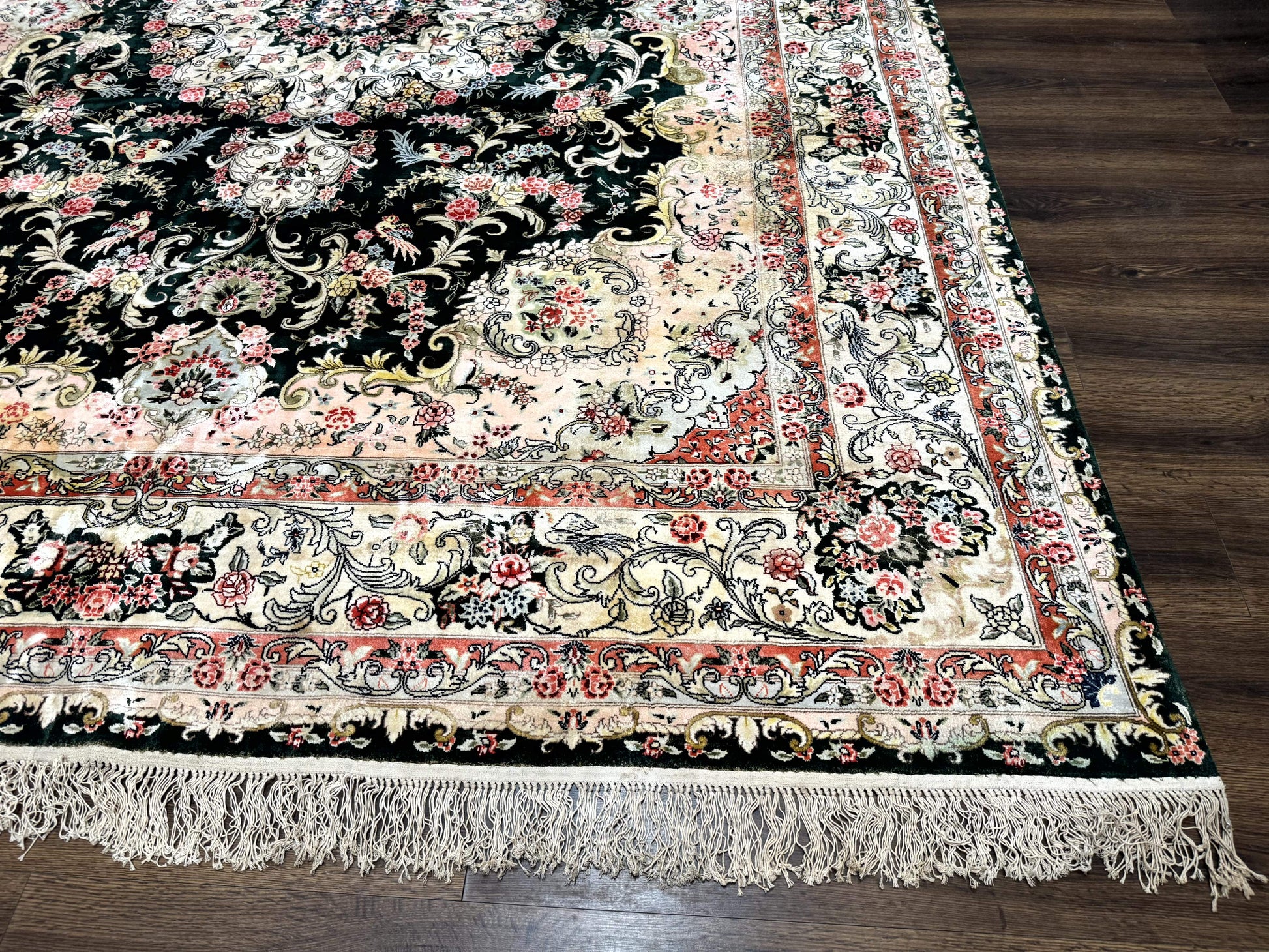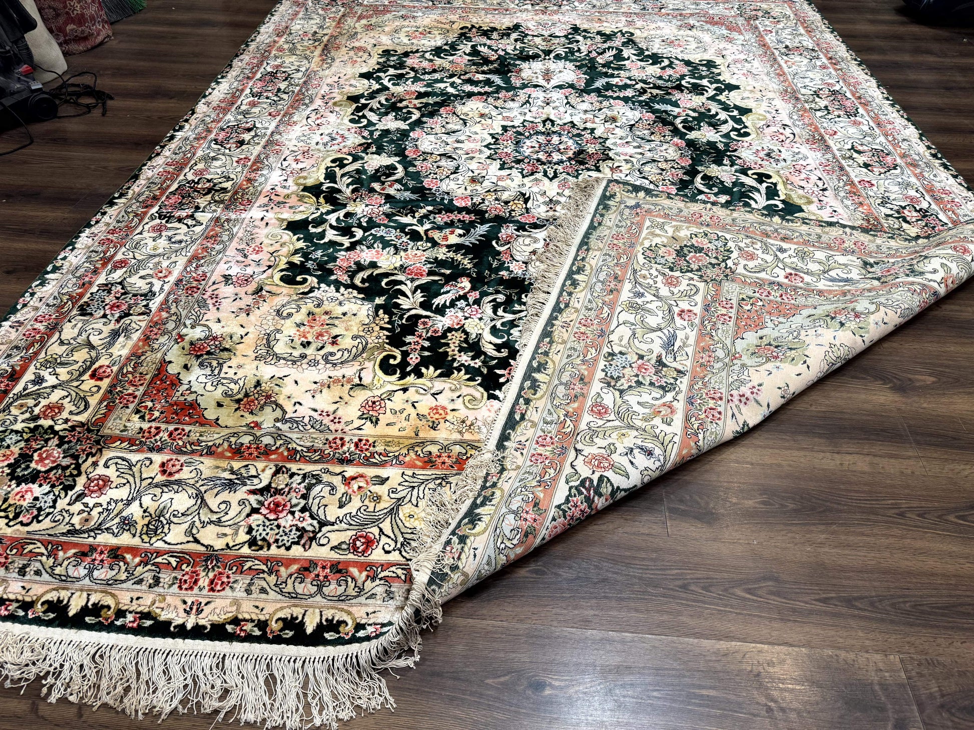 Kashmiri Silk Rug 9x12 Vintage Hand Knotted Carpet For Elegant Interiors
