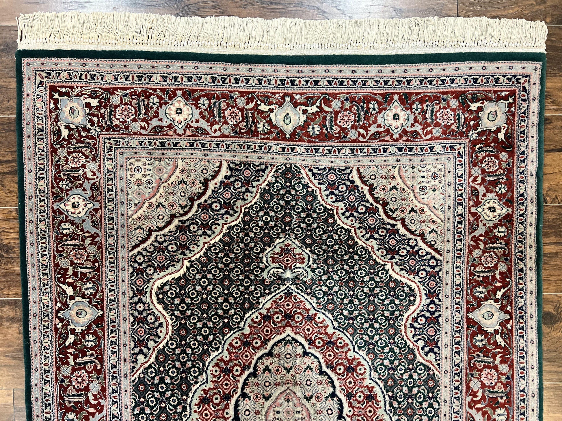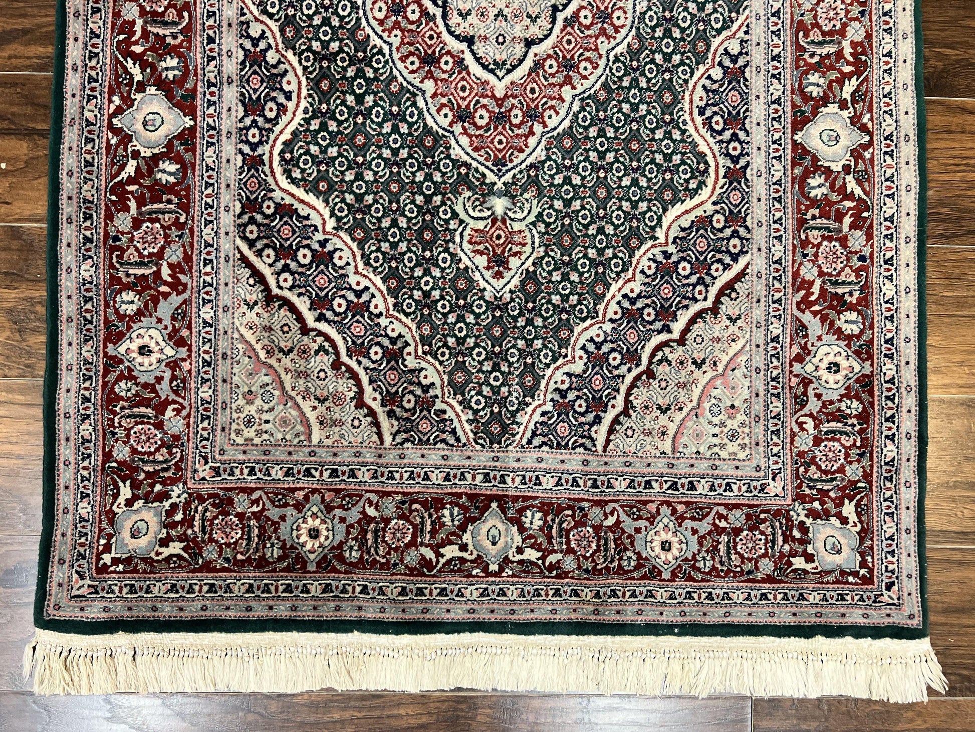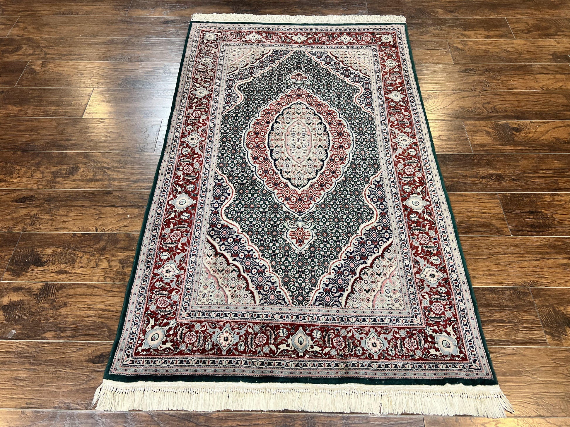 Sino Persian Rug 4x6 Hand Knotted Wool Silk Highlights Herati Medallion Vintage Carpet Green Maroon