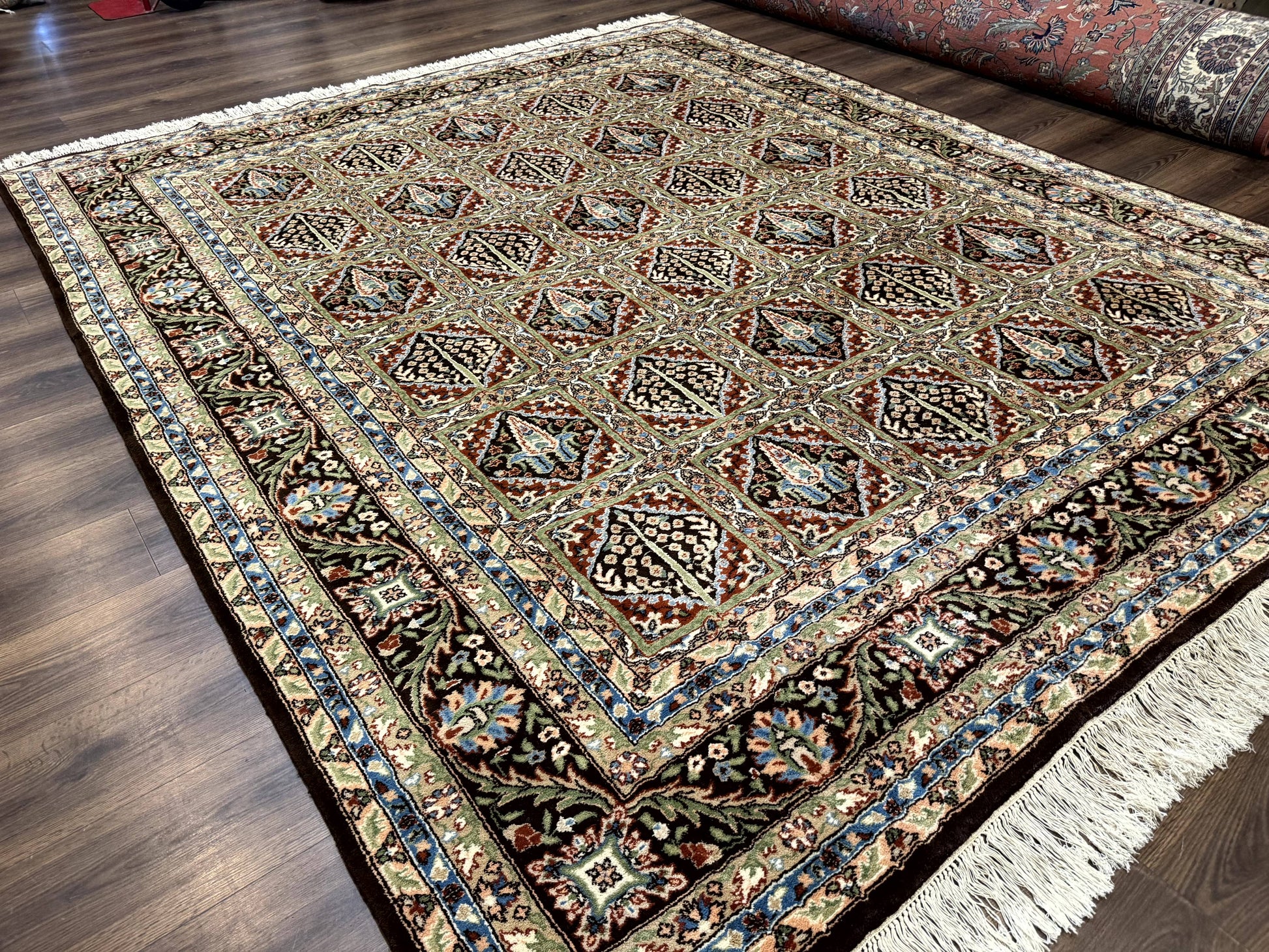 Sino Persian Wool Rug 8x10 Hand Knotted Panel Design Cedar Trees Brown Multicolor