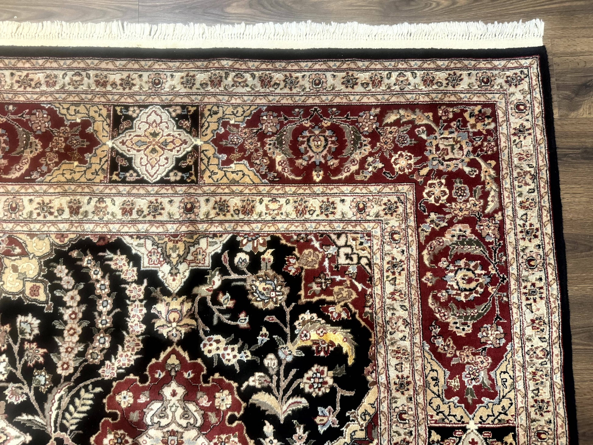 Sino Persian Rug 9x12 Wool Silk Handmade Allover Pattern Black Maroon