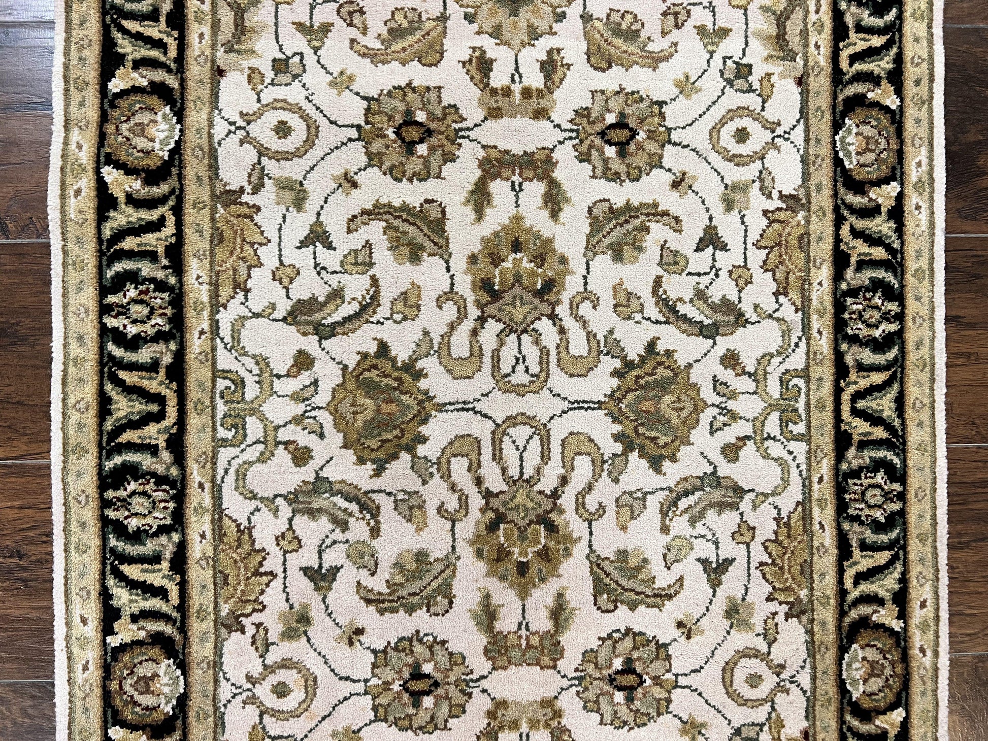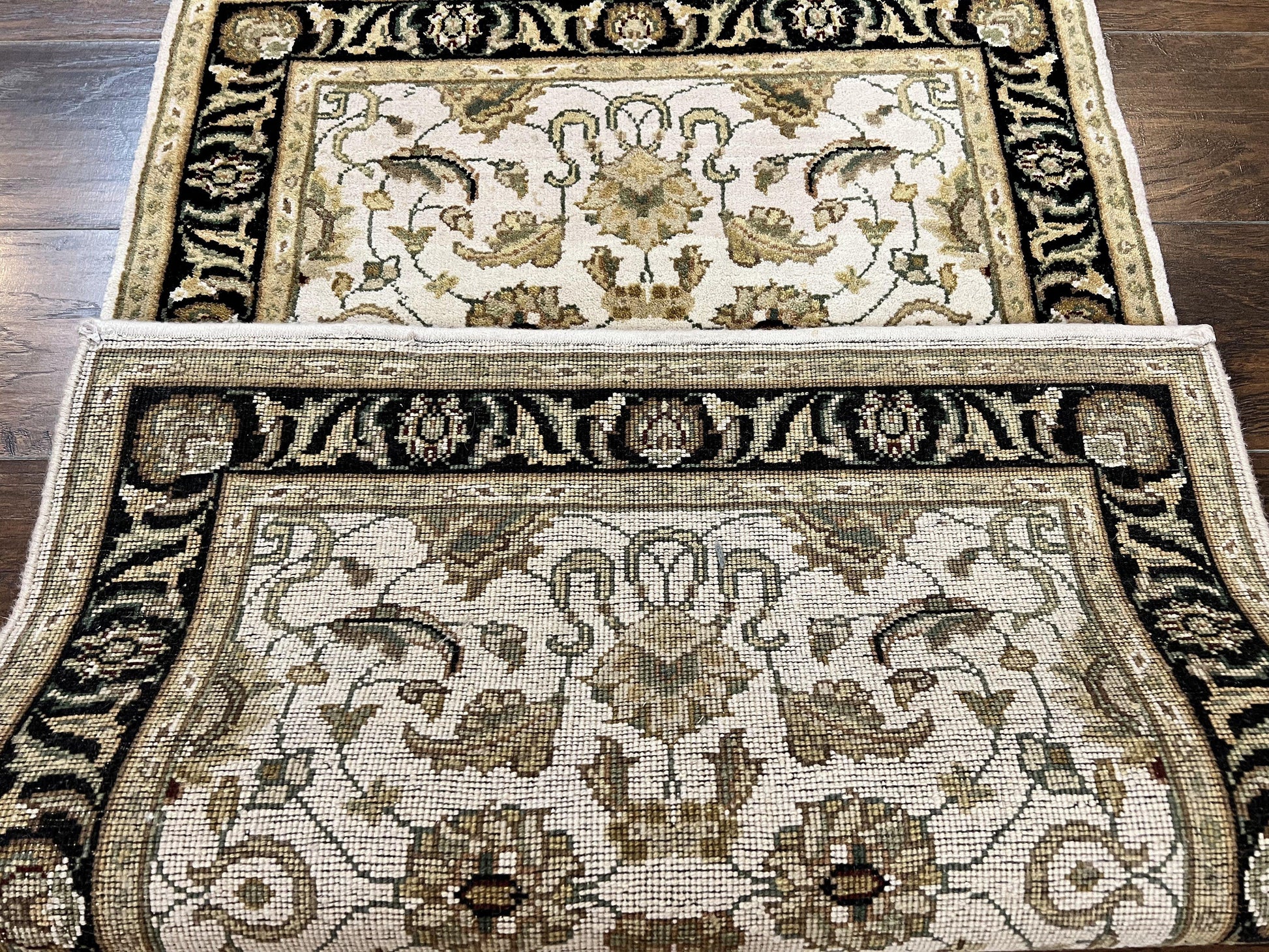 Small Indo Mahal Rug Hand Knotted Wool Vintage Oriental Carpet Beige Tan Black