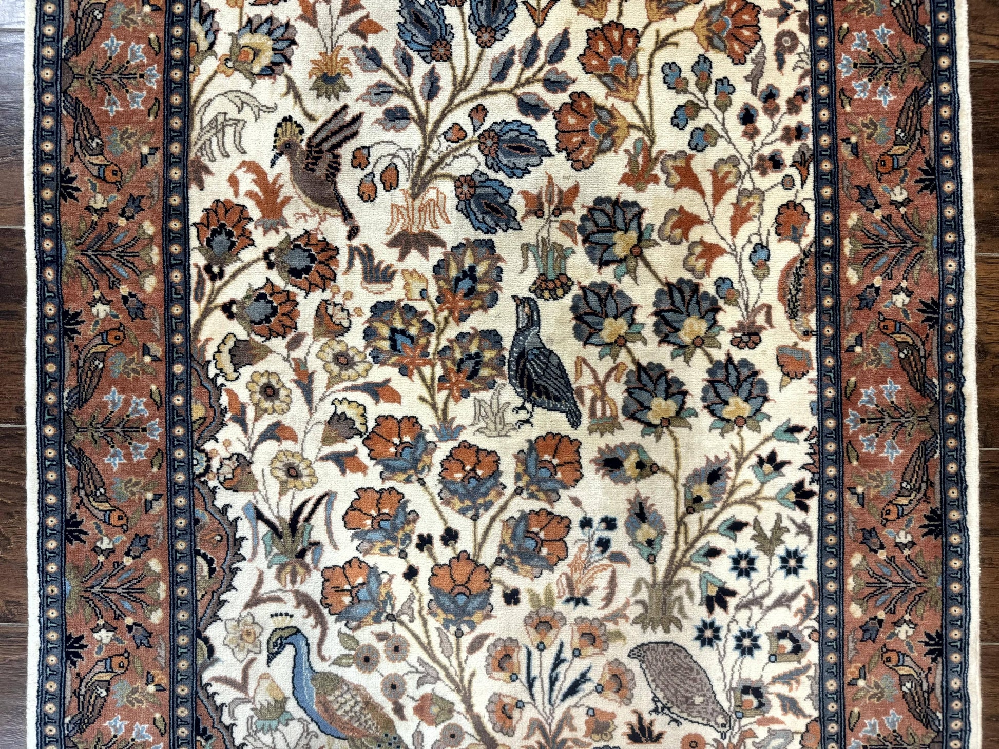 | Condition/Notes | Very good condition. Bird/peacock pictorials. Finely hand knotted with a knot density of 320 KPSI. Free of stains, odors, discolorations, tears, etc. Recently cleaned and ready to be enjoyed in your space. |