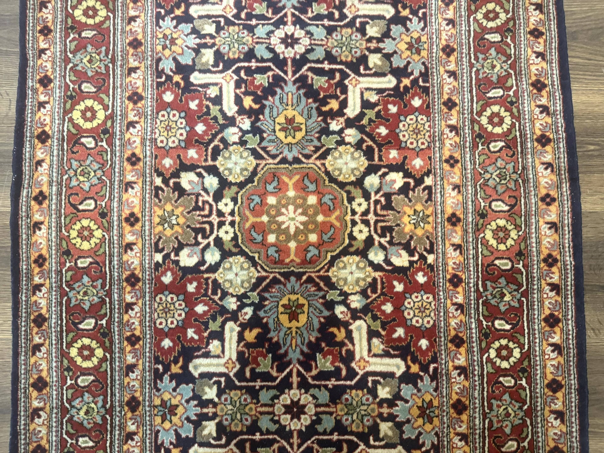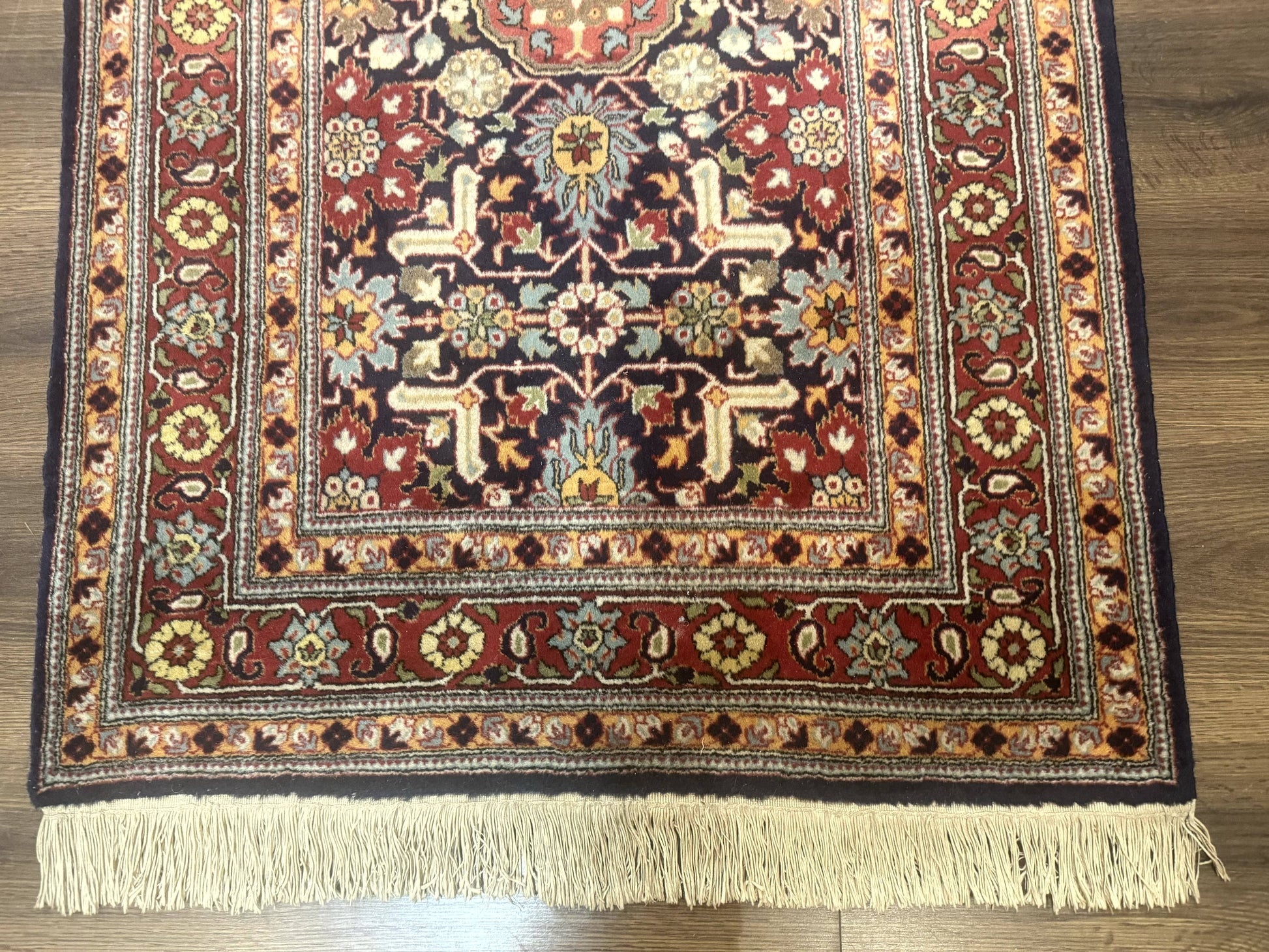 Turkish Hereke Rug 3x5 Hand Knotted Wool Vintage Navy Blue Red 210 KPSI