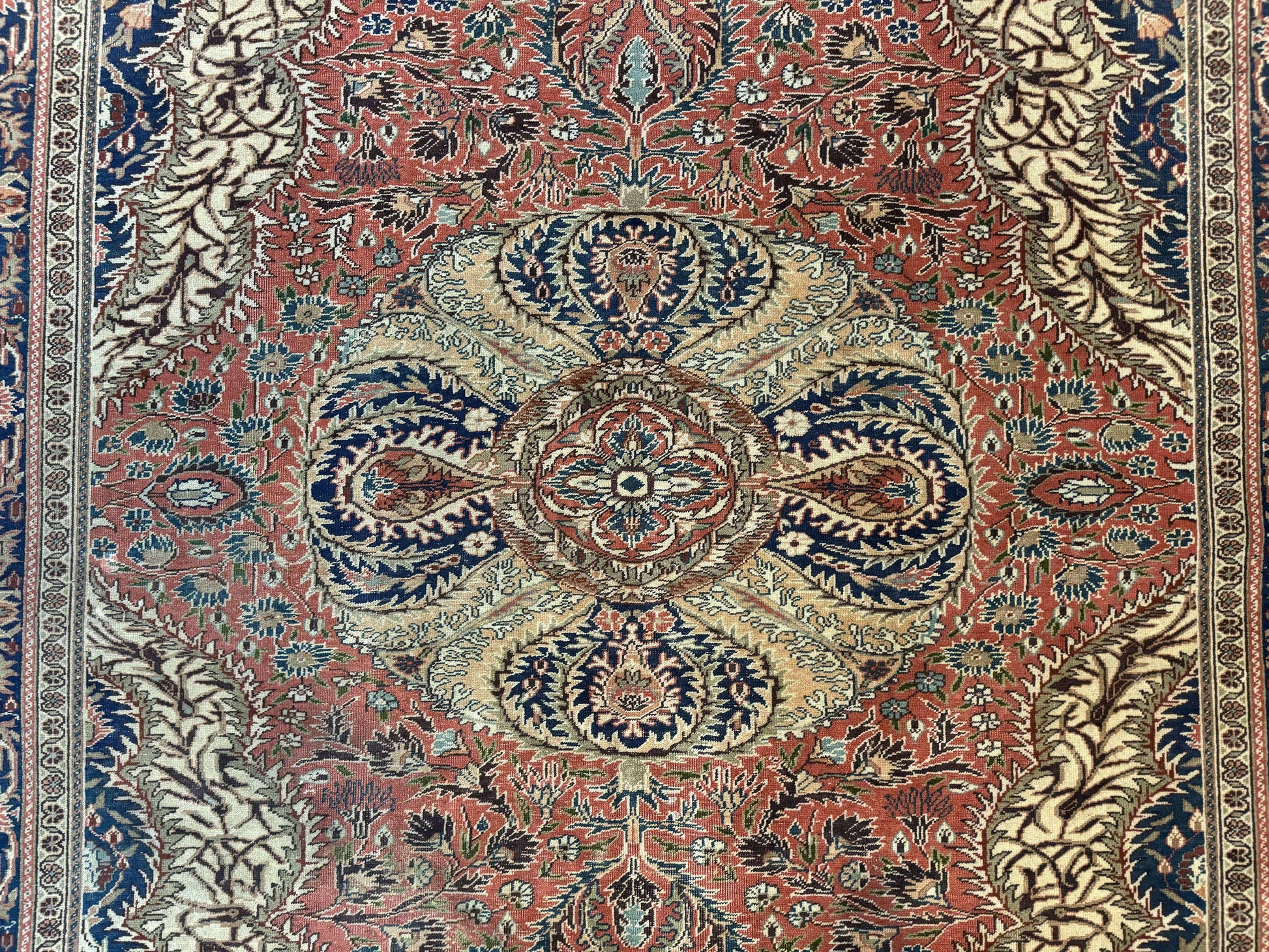 Enhance your space with the rug’s rich colors and enduring hand-knotted construction. The wool fibers deliver a soft, durable feel underfoot, while the ornate floral medallion pattern adds timeless elegance without overpowering other decor. Its semi-antique charm pairs well with both traditional and contemporary interiors, and the recently cleaned condition helps ensure immediate, hassle-free enjoyment in high-traffic areas.