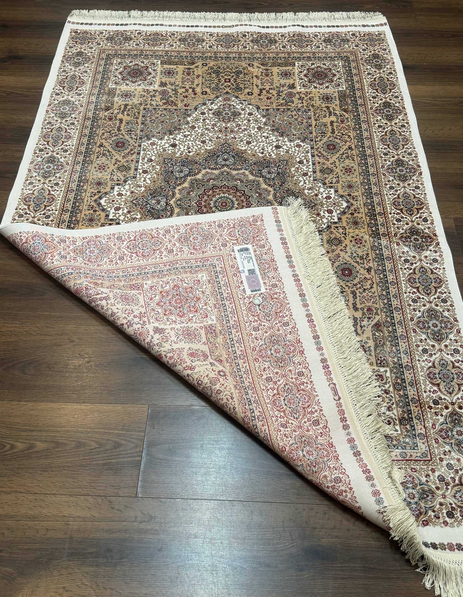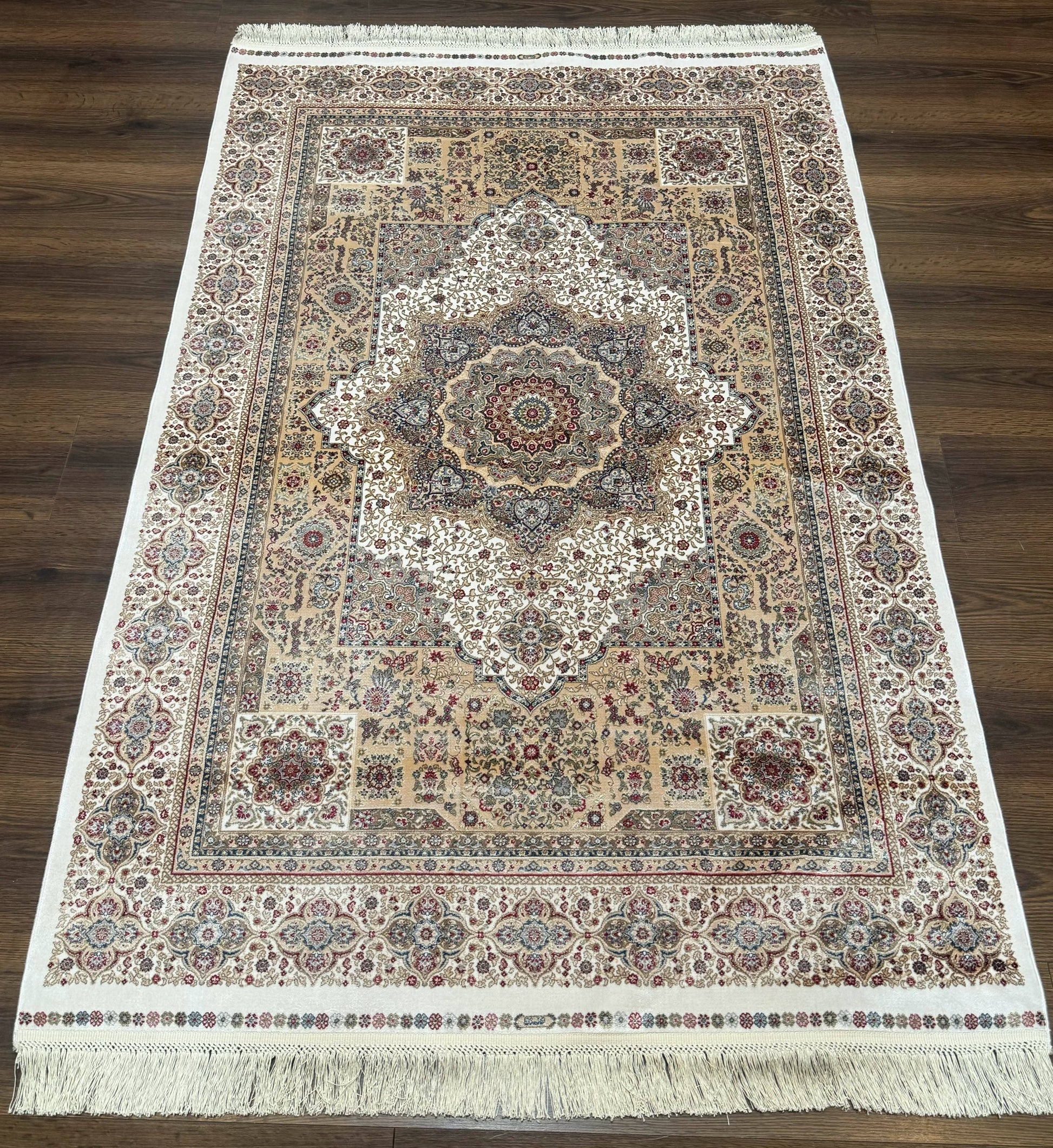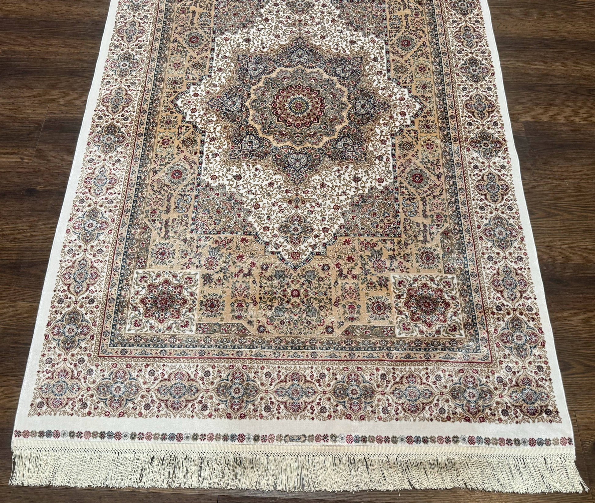 Memluk Silk Rug Turkish Hereke Style 4x6 Bamboo Silk Contemporary Carpet