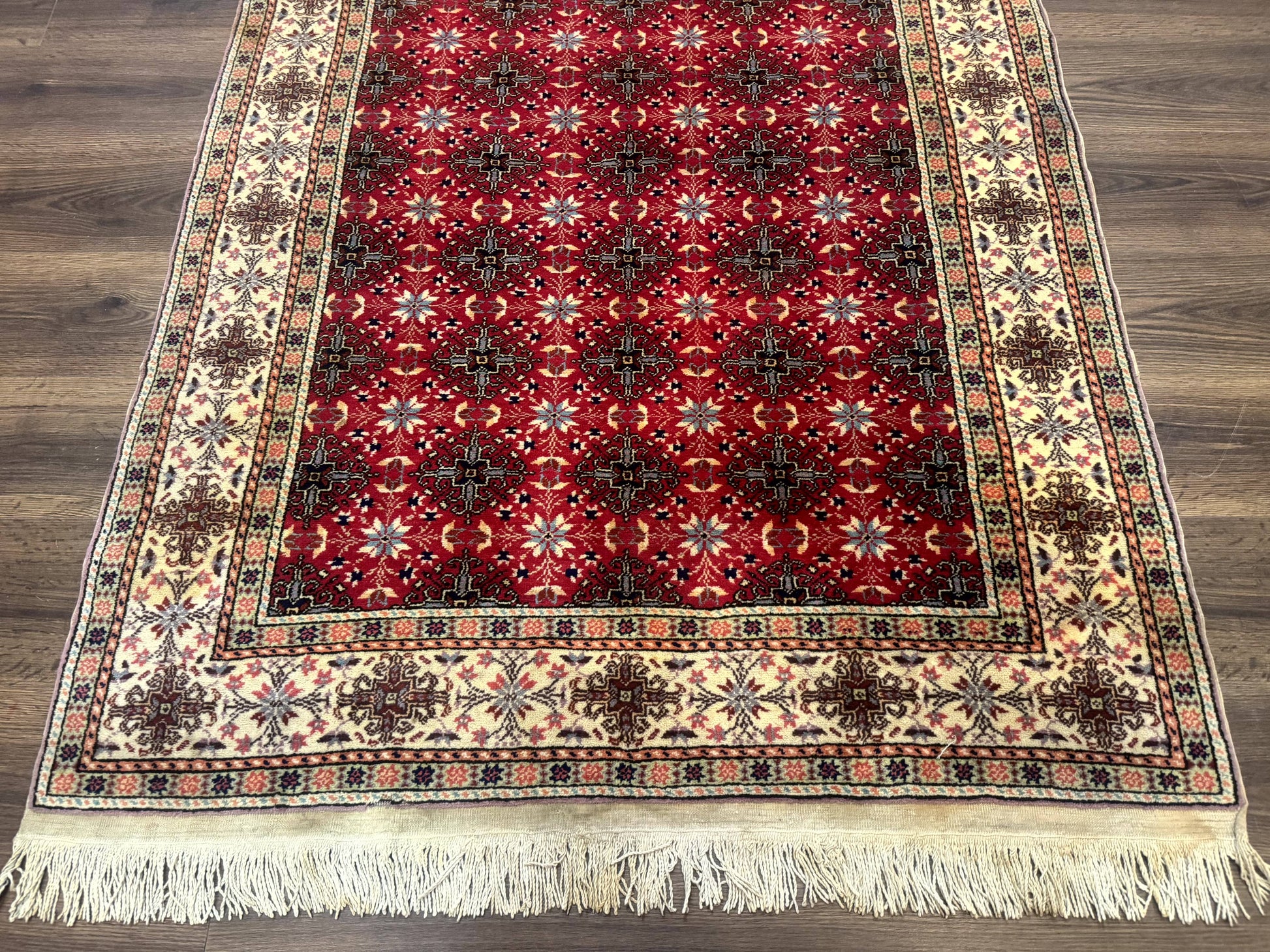 Turkish Sivas Rug 4x6, Red and Cream, Allover Design, Handmade Vintage