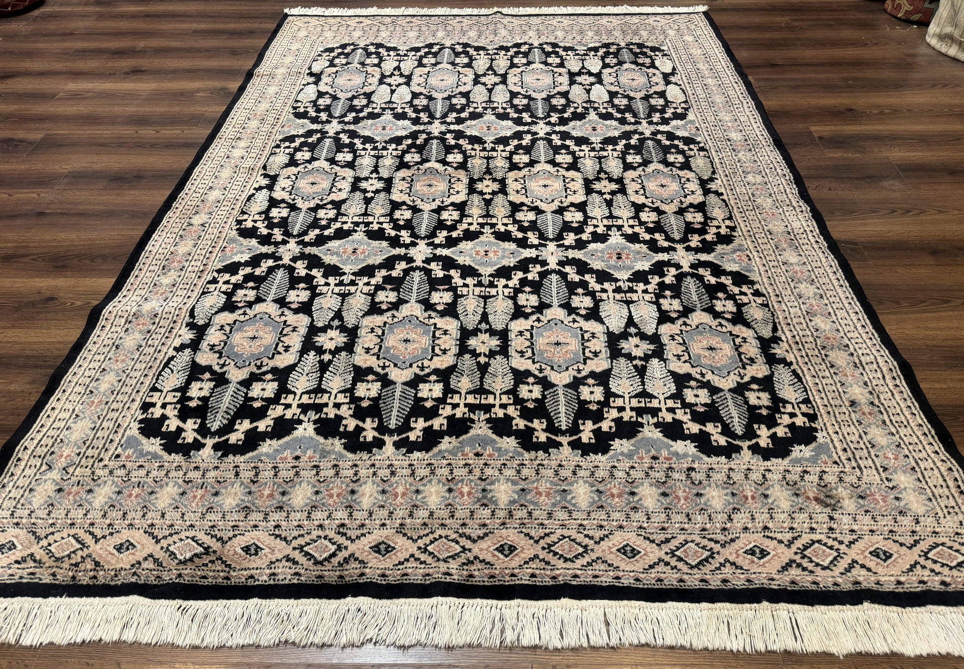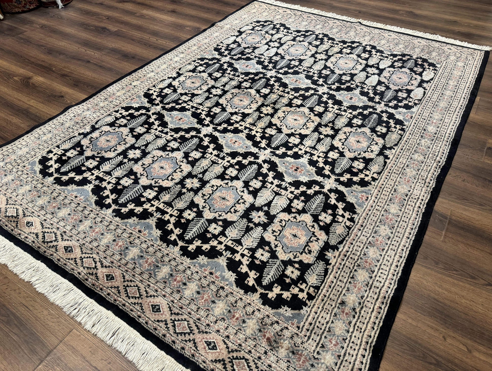 Turkoman Bokhara Rug 6x9 Hand Knotted Wool Carpet Black Handmade Authentic Pakistani