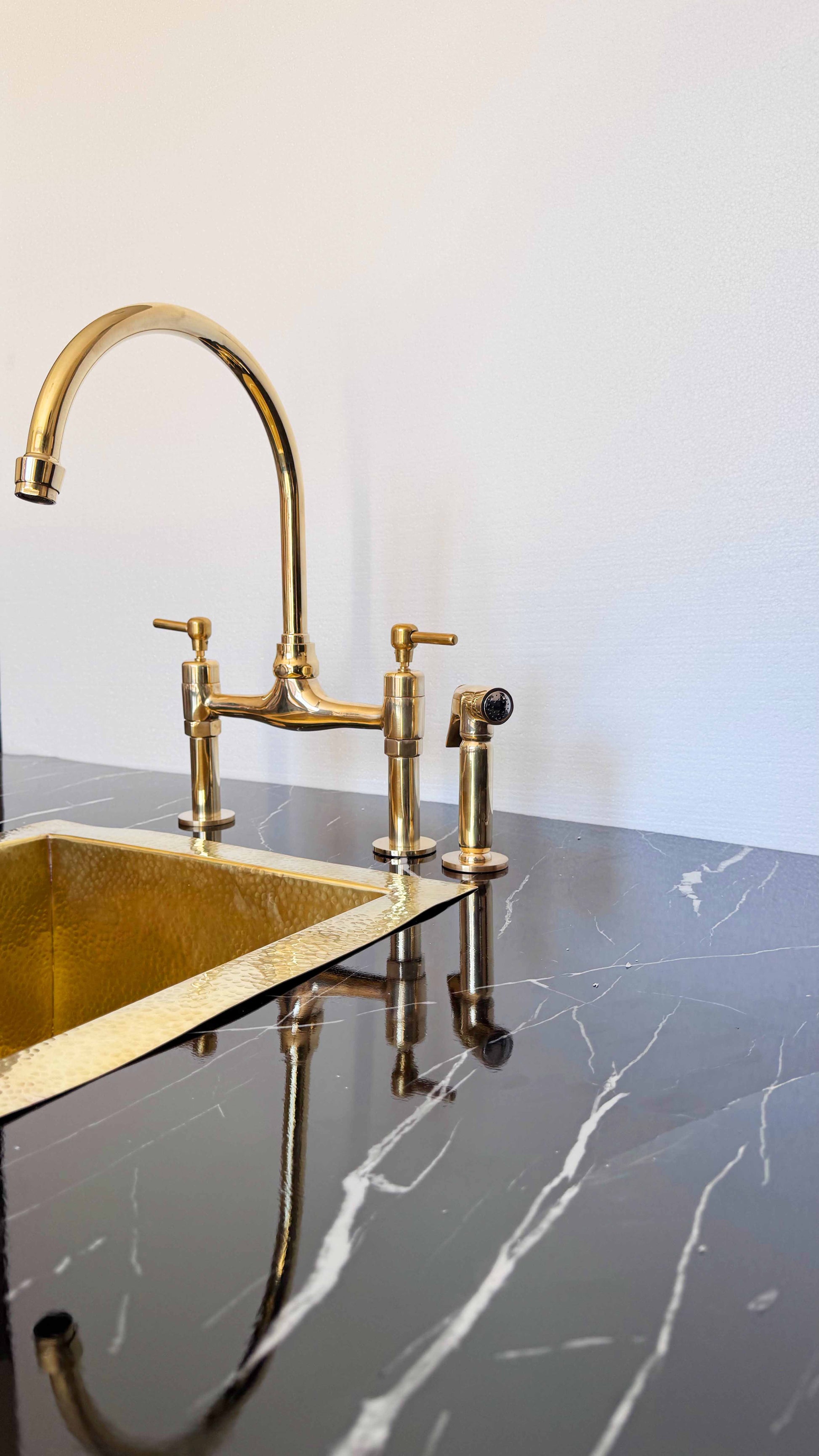 Designed for those who appreciate classic elegance, the Palmeraies unlacquered brass kitchen faucet ages gracefully and integrates effortlessly with USA plumbing systems.