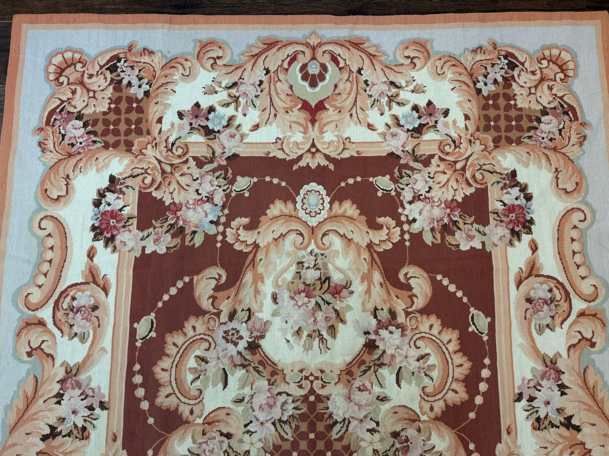 Aubusson Rug Vintage Needlepoint Wool Flatweave 6x9 Carpet European Design