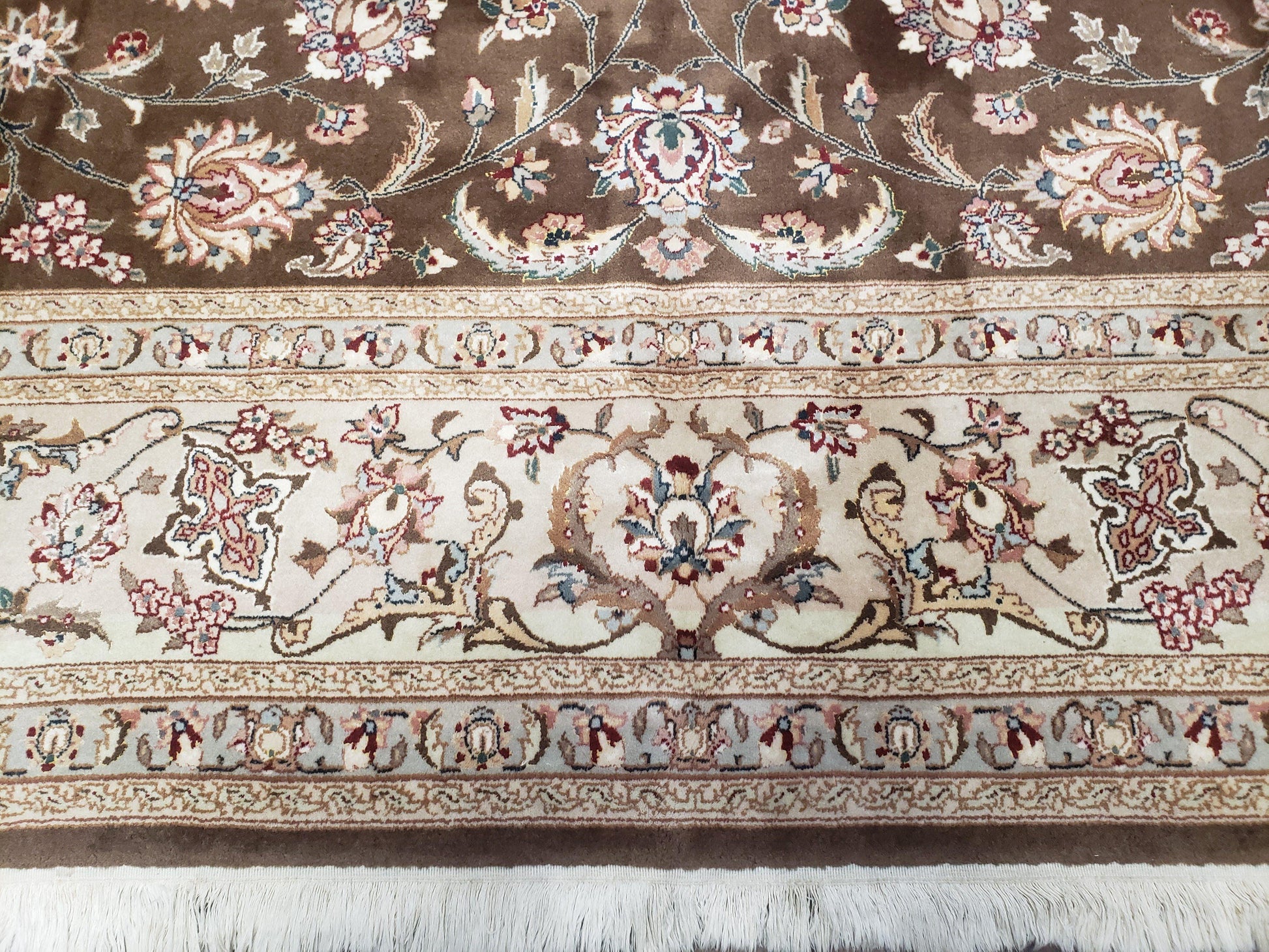 Pak-Persian Vintage Wool Rug 9x12 Hand-Knotted Spice Brown Ivory Traditional Oriental Carpet