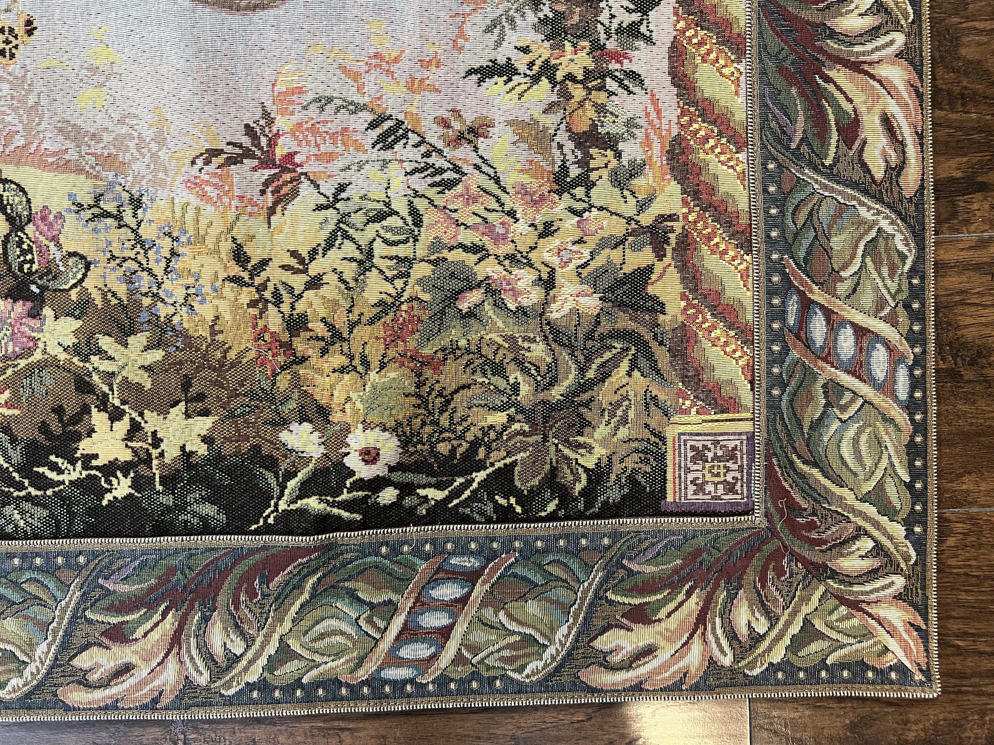 Discover a touch of vintage artistry with the Adorned Elephant Pictorial Tapestry. Made from wool and rooted in Belgian craftsmanship, this 1980s piece adds warmth, color, and character to any space.