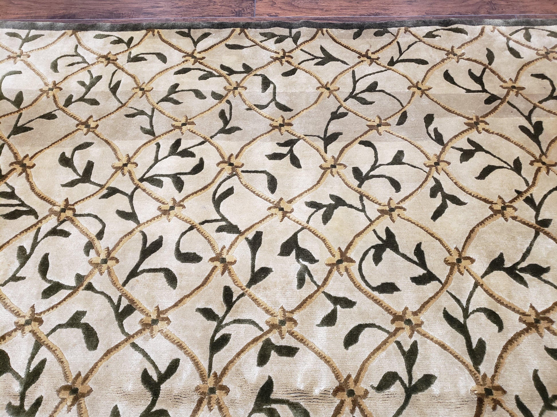 Vintage Tibetan Area Rug 9x12 Hand Knotted Wool Nepali Beige Soft Pile For Living Room