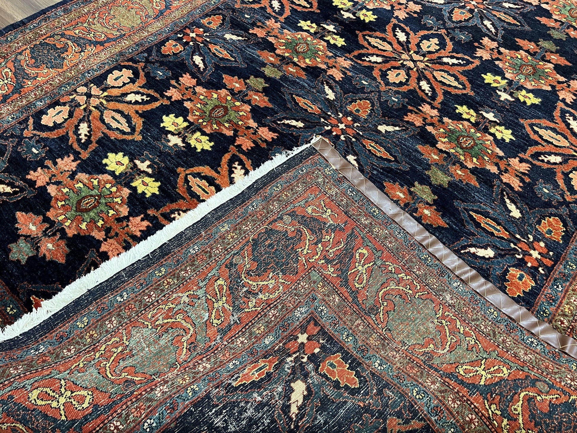 Hand Knotted Persian Bidjar Rug 7x10 Wool Navy Blue Red Floral Pattern