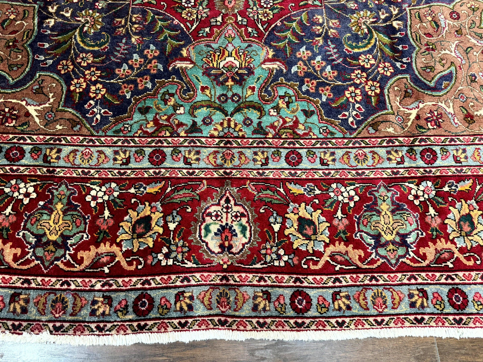 Wonderful Persian Tabriz Rug 10x14, Antique Persian Carpet, Handmade Wool Rug, Floral Medallion, Red Navy Blue, Colorful, Large Persian Area Rug