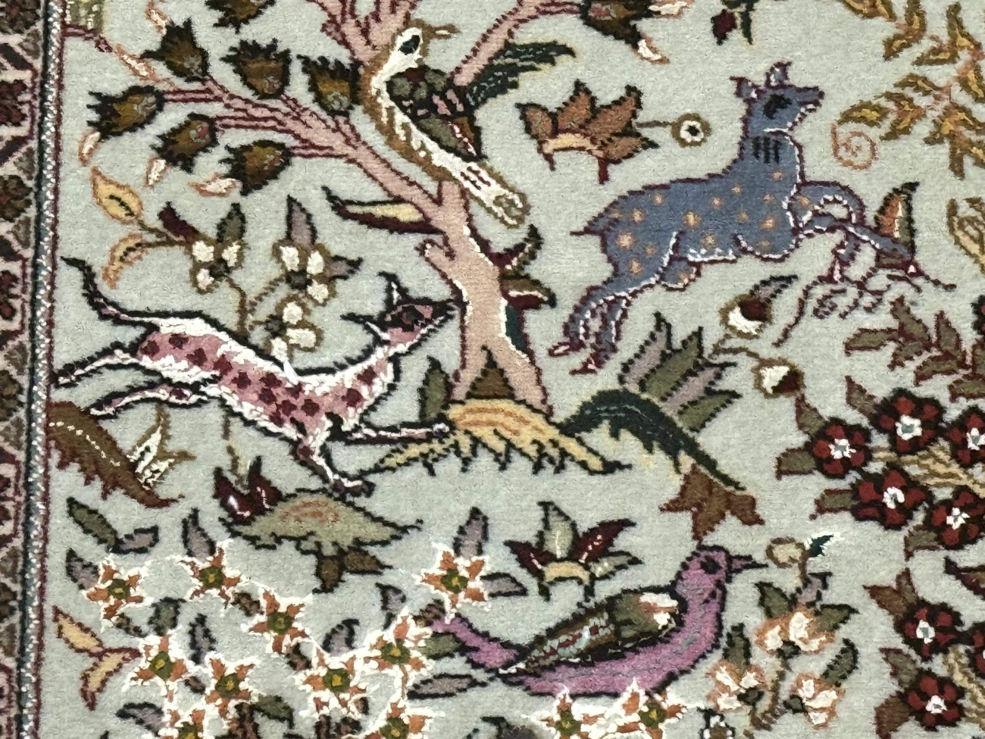 | Condition/Notes | Very good condition. Free of stains, odors, discolorations, tears, etc. Very finely hand knotted with a knot density of 330 KPSI (50 Raj). Features wonderful tree of life design with a multitude of animal pictorials. Recently cleaned and ready to be enjoyed in your space. |