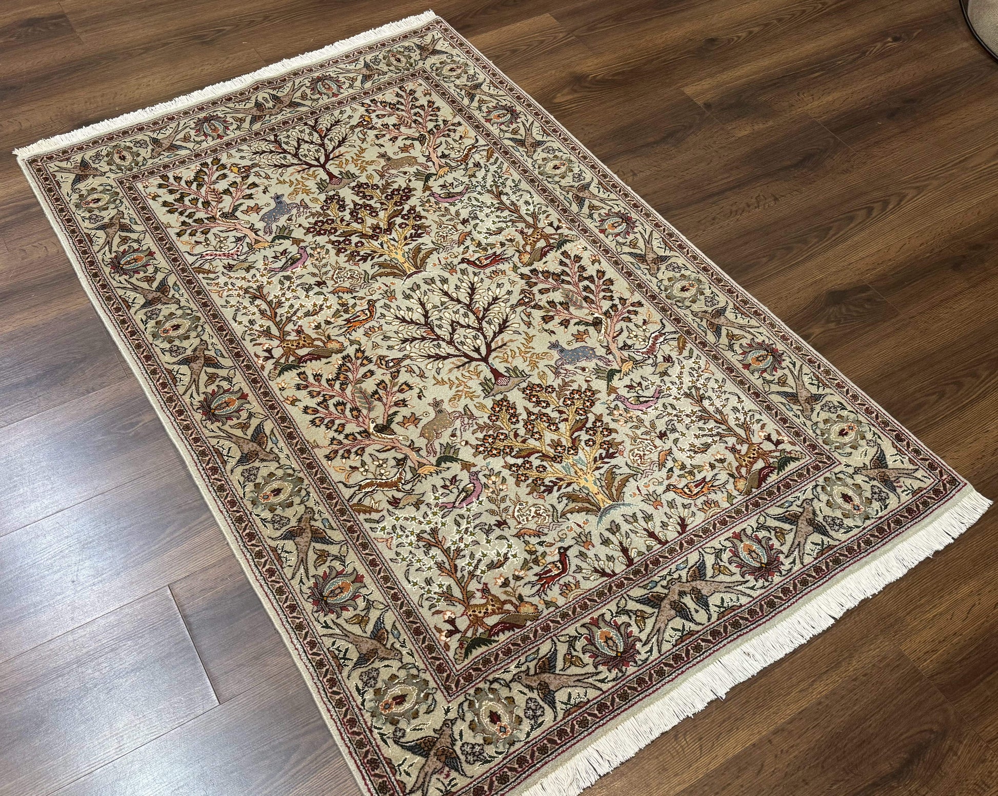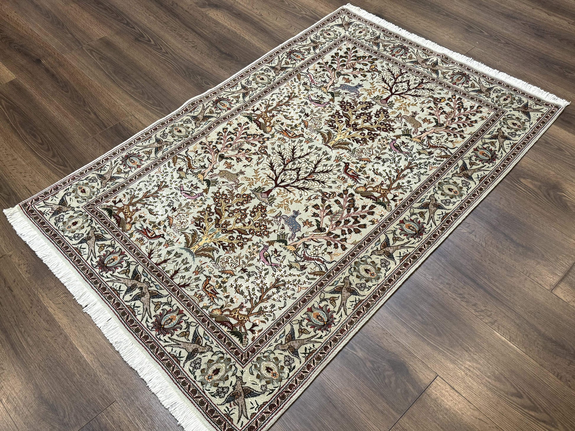 Persian Tabriz Rug 3x5 Tree Of Life With Birds And Animals Wool Silk Highlights