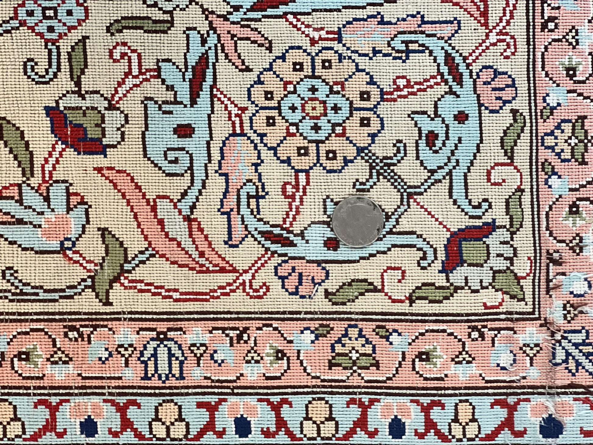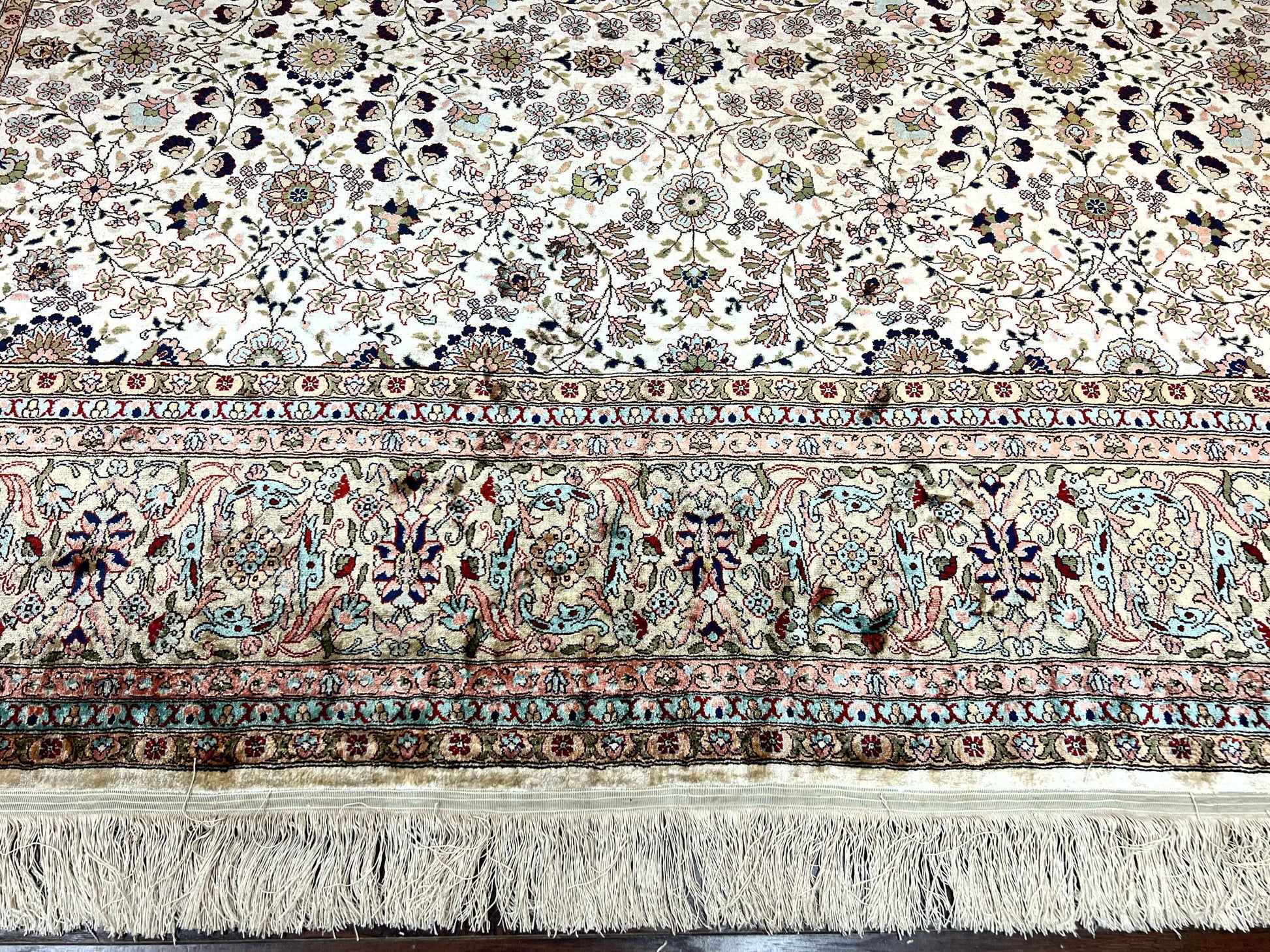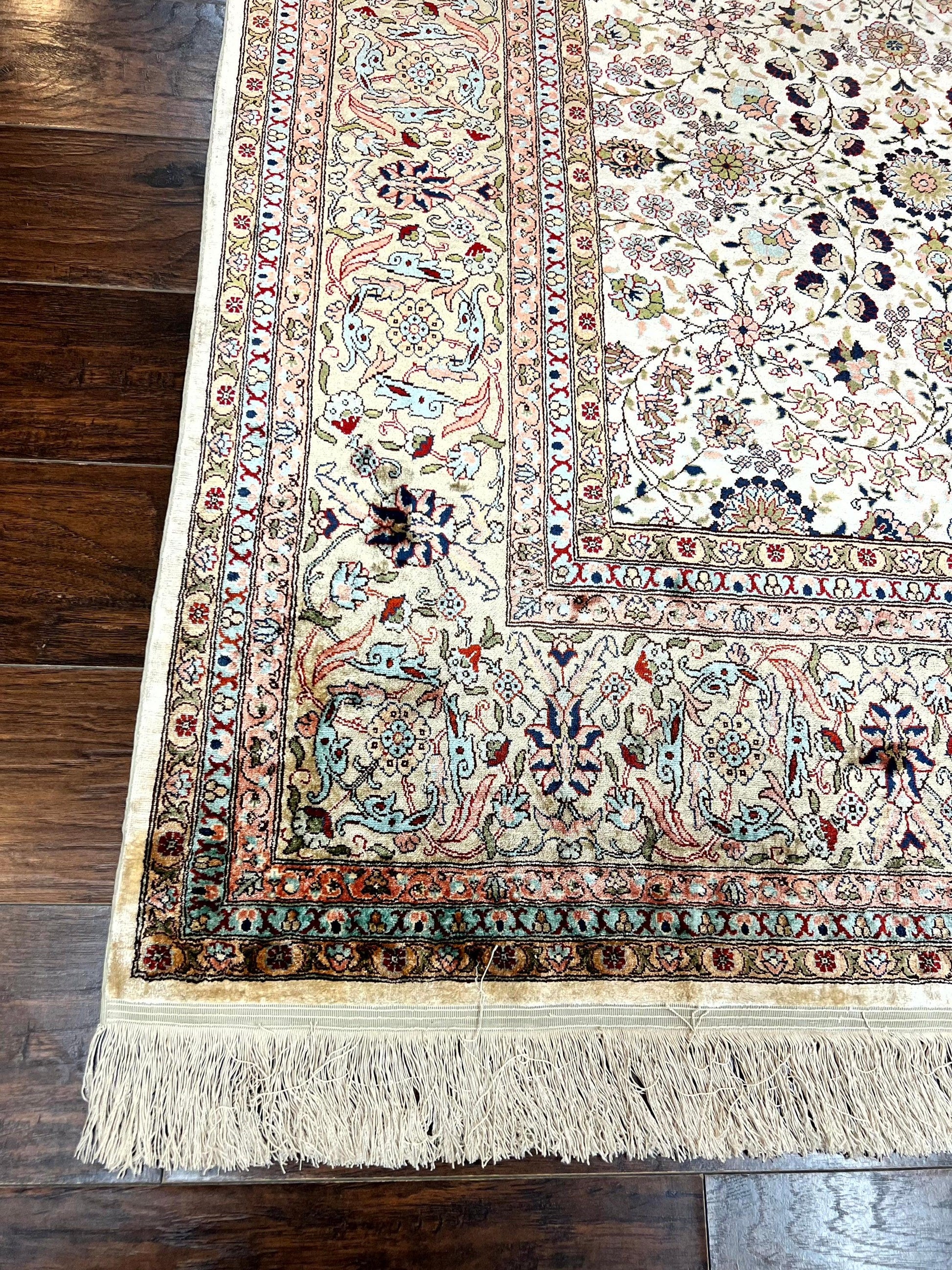 Hereke Silk Rug Vintage 8x12 Handmade Ivory Cream Floral Pattern Pile