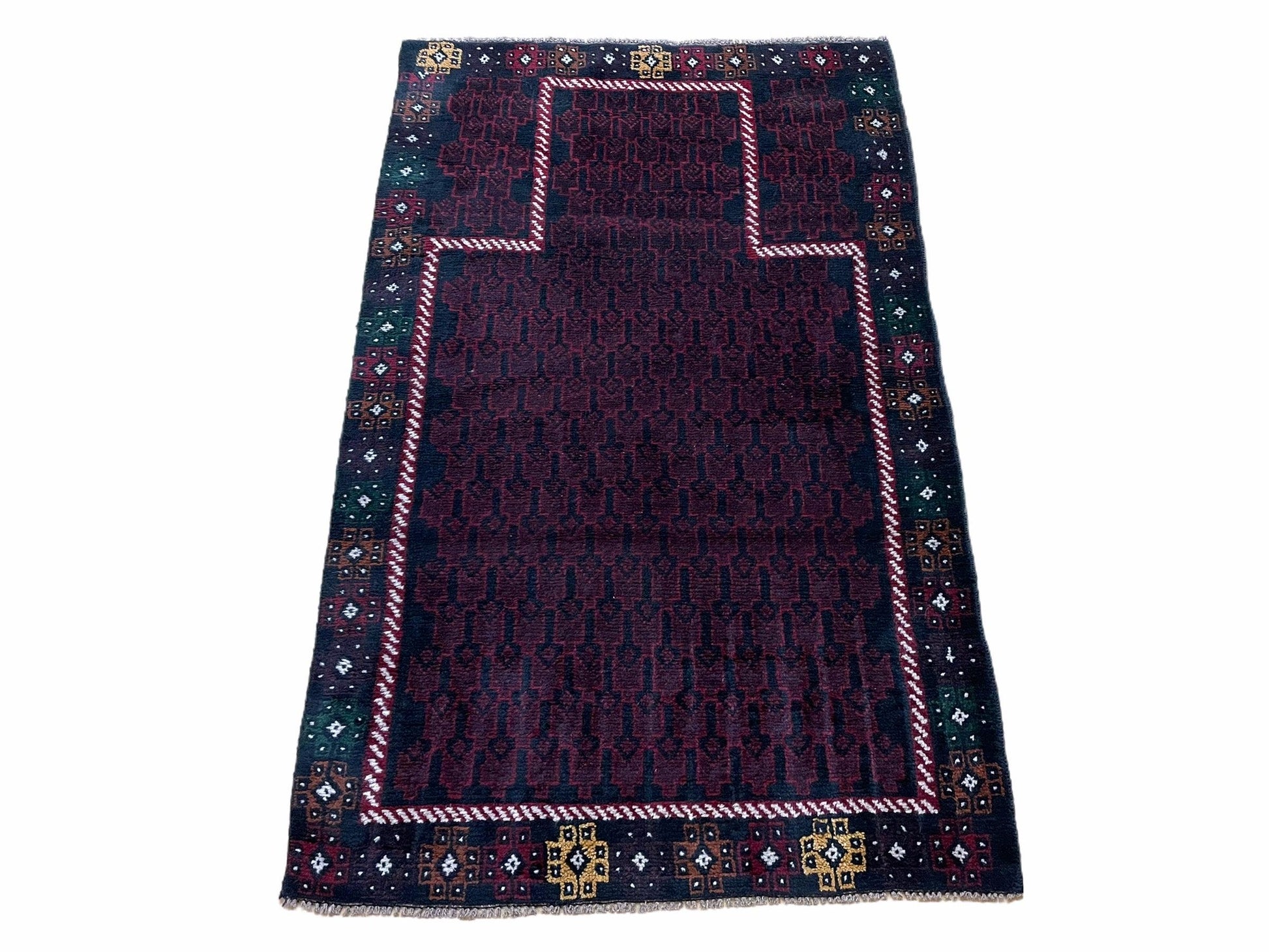 Meet a vintage, handmade Baluchi rug from Afghanistan: a wool, hand-knotted piece that brings timeless tribal character to any space. Sized at 3' x 4'7", it fits well in living rooms, bedrooms, or entryways and adds a warm, inviting centerpiece.