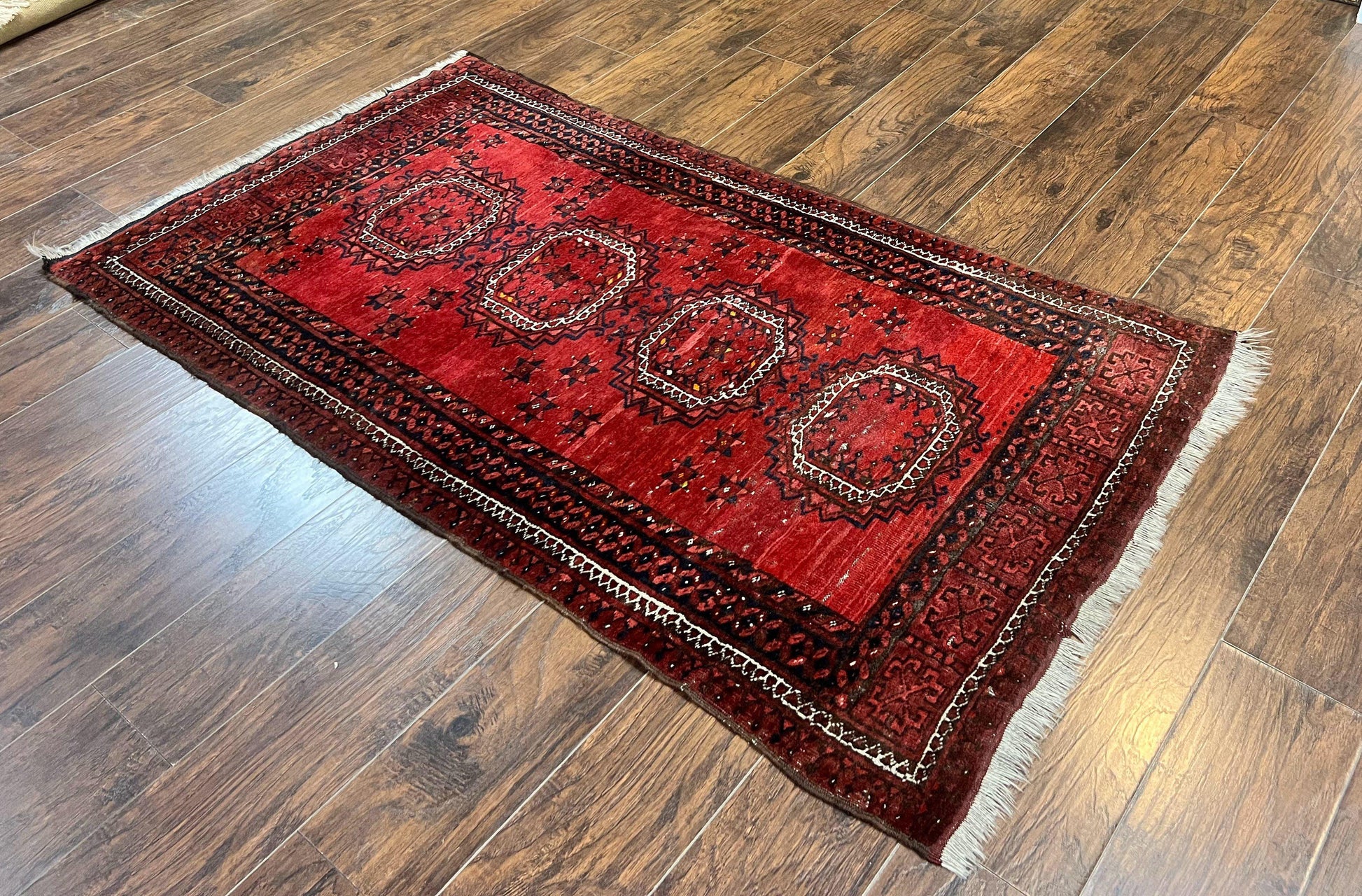 Afghan Rug 3x6 Handmade Wool Semi Antique Tribal Red Beshir Carpet