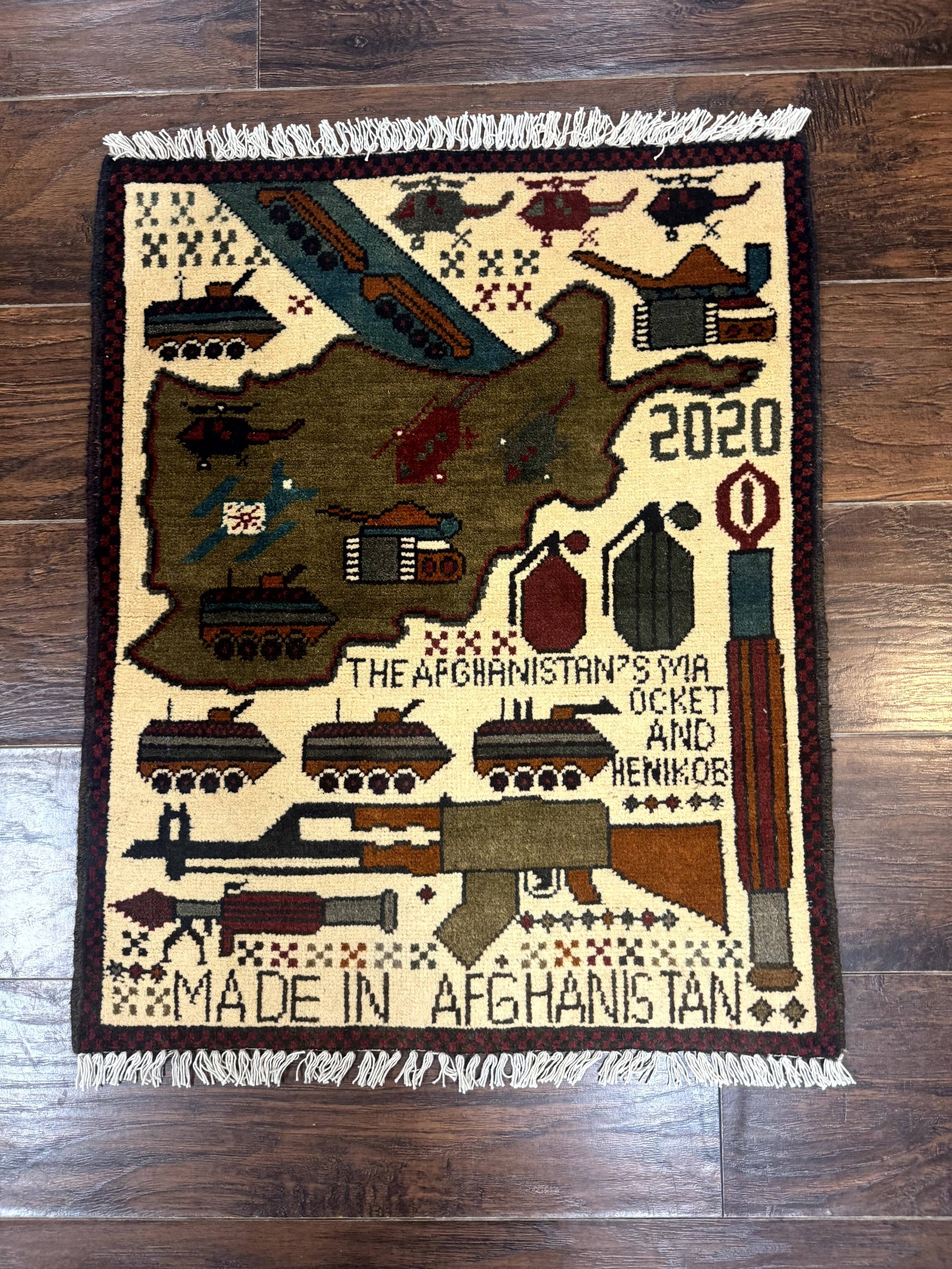 Discover a collectible Afghan War Rug that is handmade and hand-knotted in wool, showcasing iconic helicopters, tanks, and guns. Designed for collectors and interior-stylers, this piece adds character and narrative to any space.