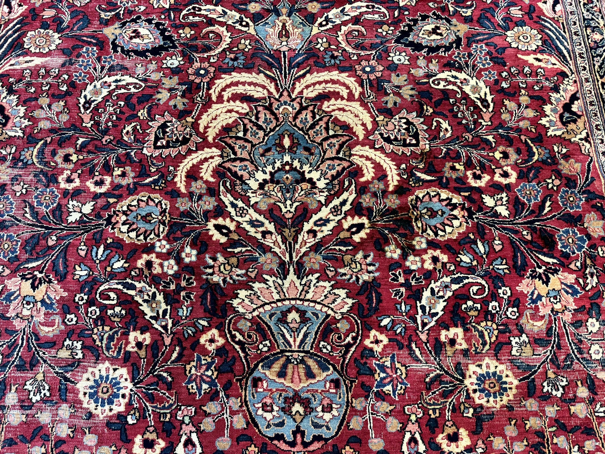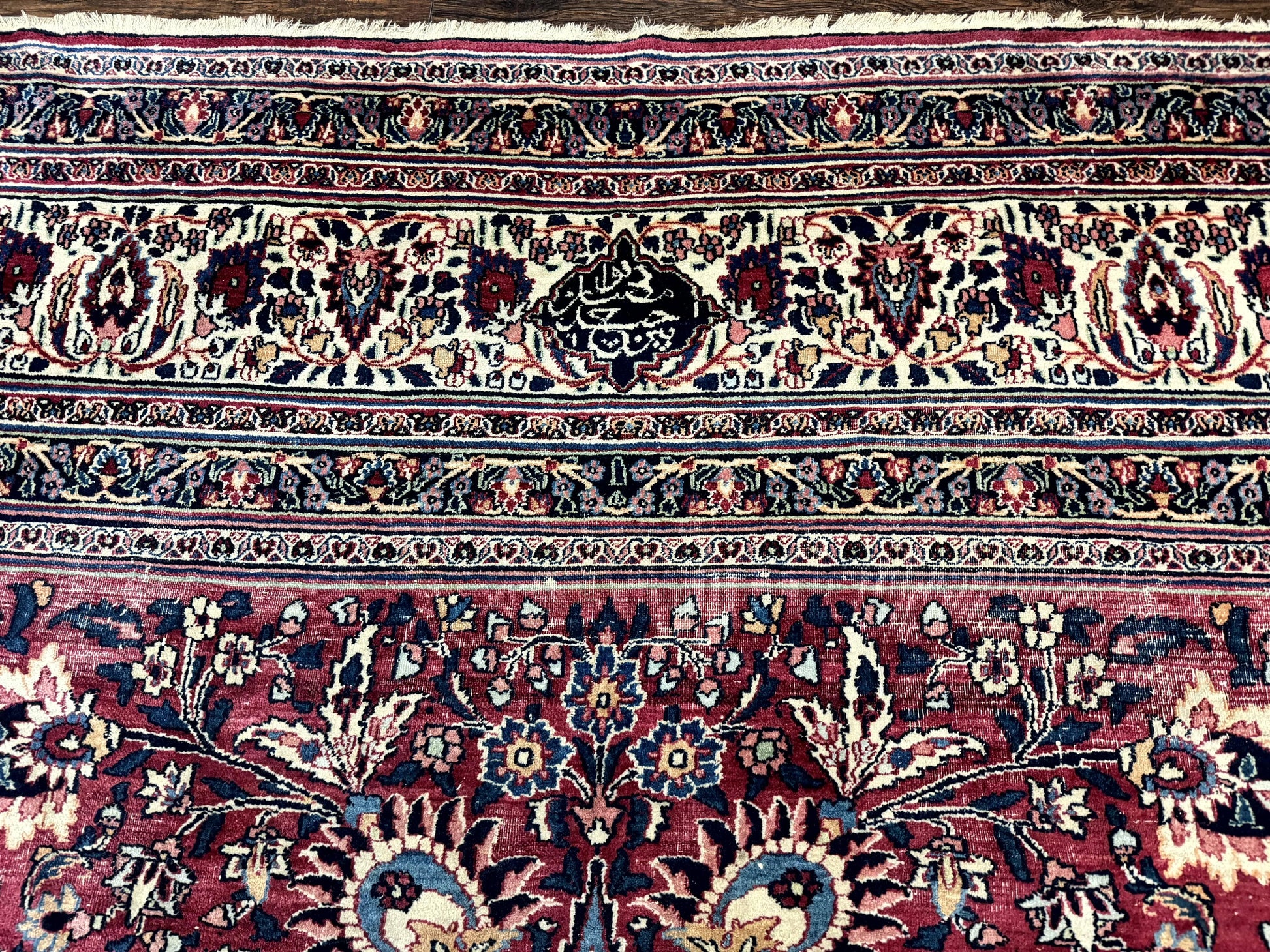 Antique Persian Mashad Rug 10x12 Hand Knotted Signed By Master Weaver Red Ivory Wool