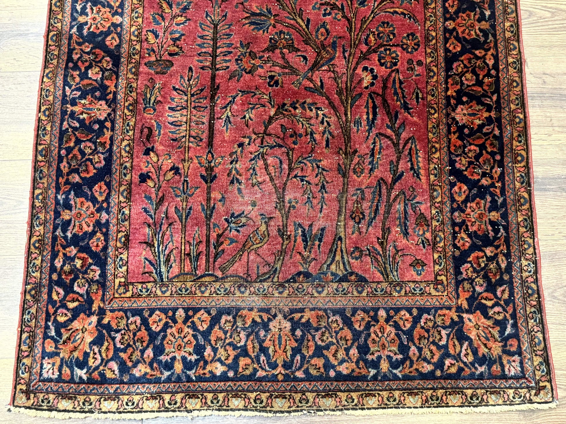 Antique Persian Tree Of Life Rug 3x5 Feet Manchester Wool With Bird Pictorials
