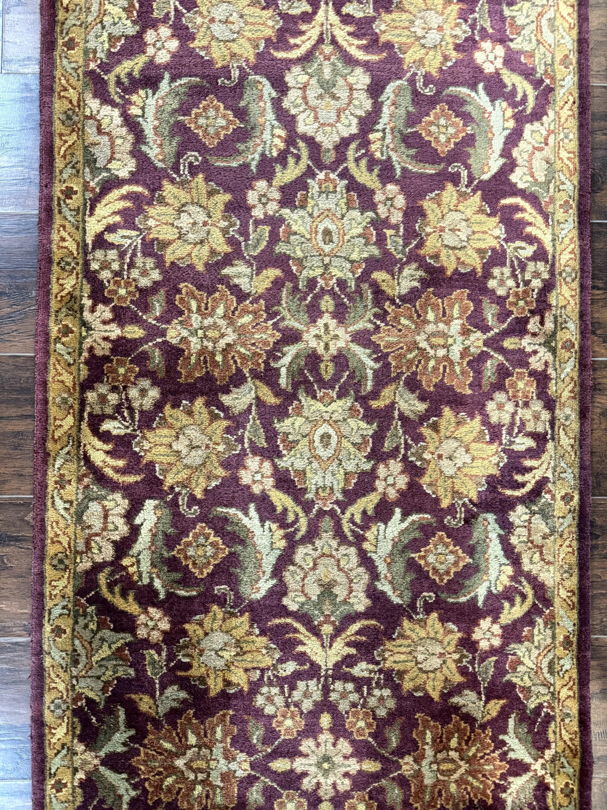 Indian Agra Runner Rug 2.6 x 17.5 Feet Floral Handmade Wool Hallway Runner