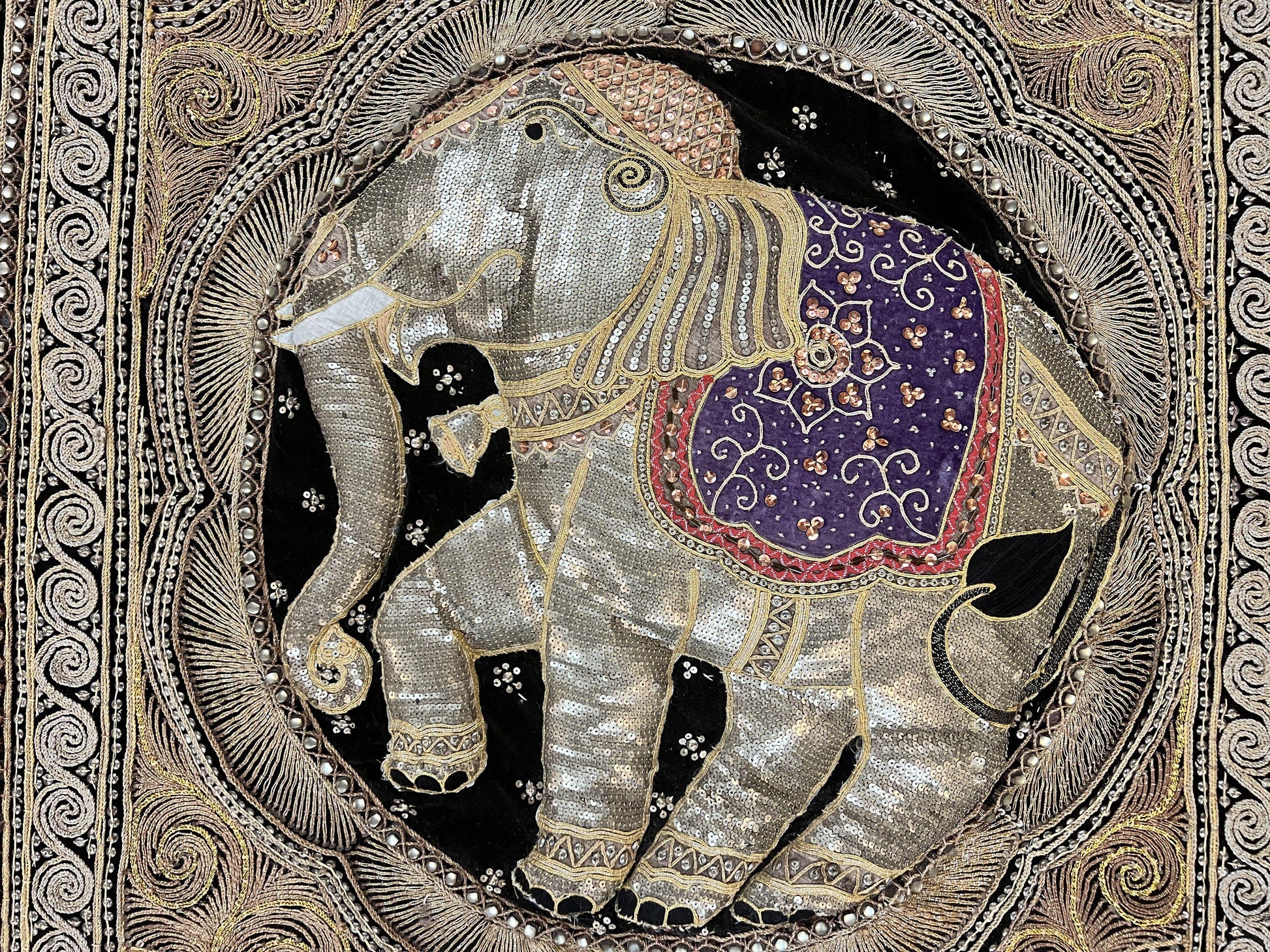 - Design: Elephant motif, classic Indian embroidery style