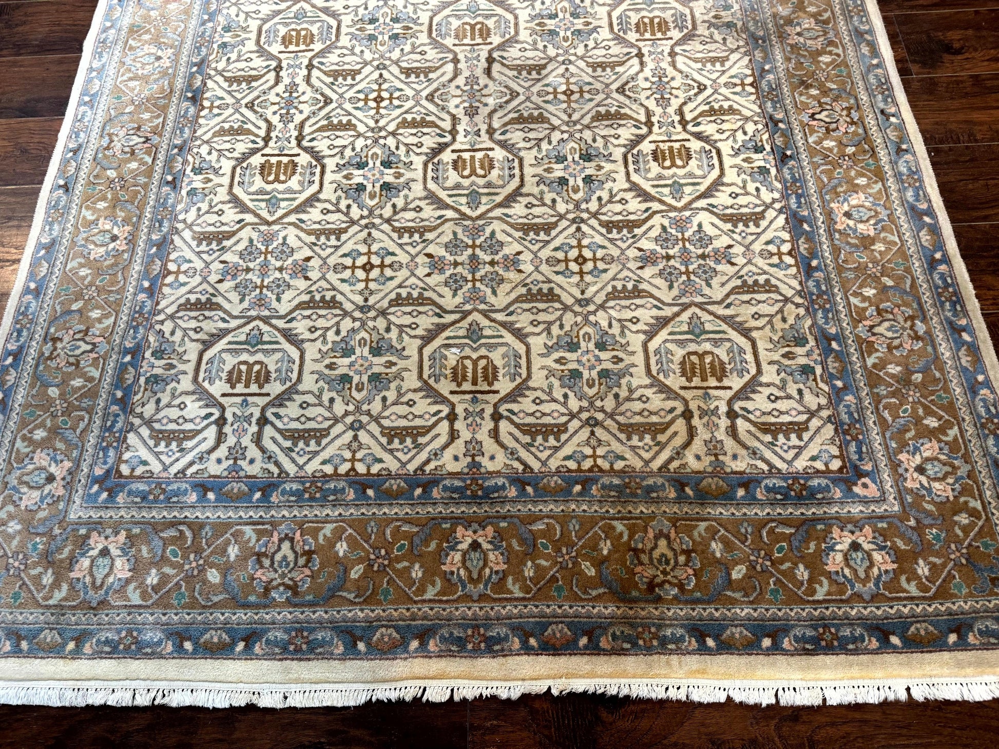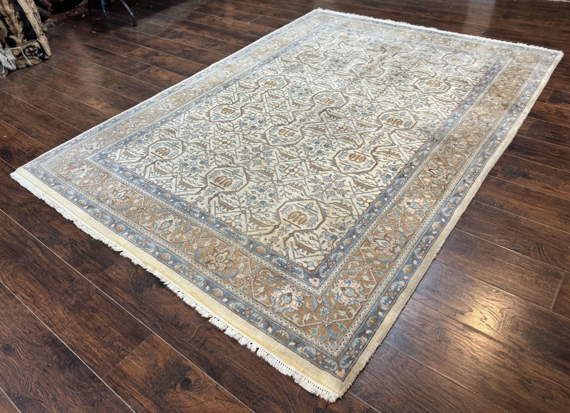 Indo Persian Rug 6x9 Beige Vintage Hand Knotted Wool Oriental Carpet